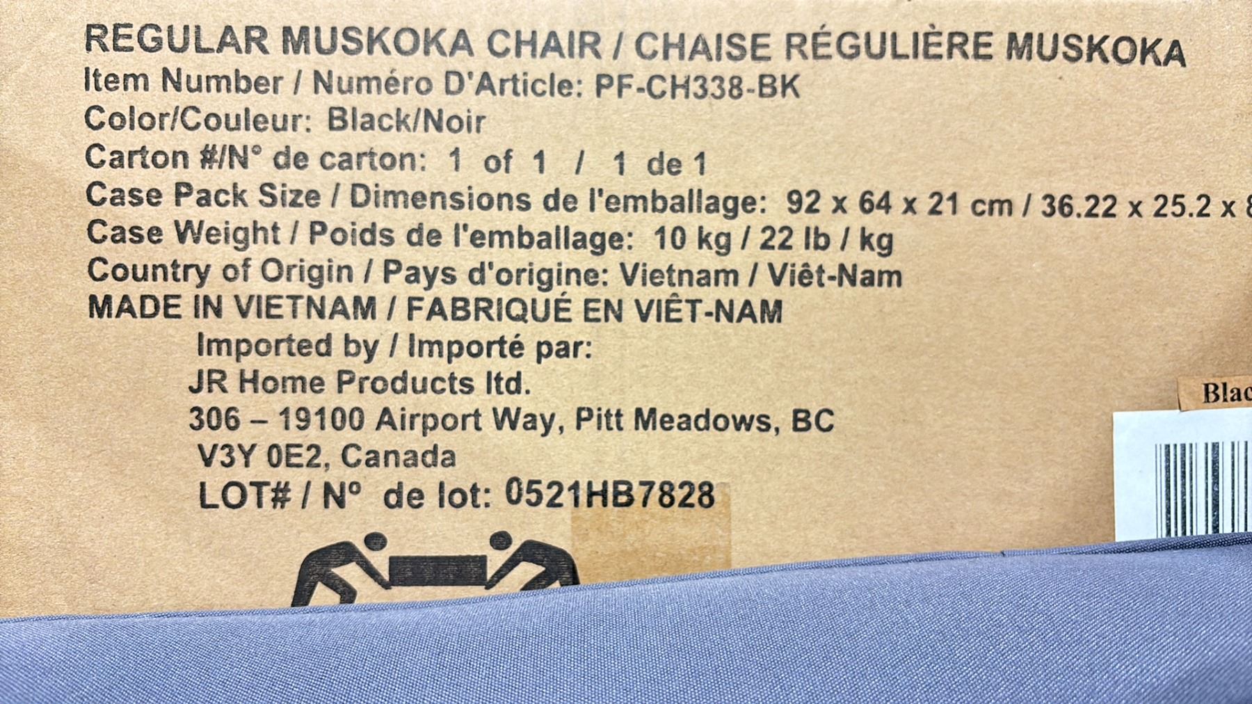 PATIOFLARE BLACK MUSKOKA OUTDOOR PATIO CHAIR WITH GREY CUSHION ( PF-CH338-BK ) * IN BOX *