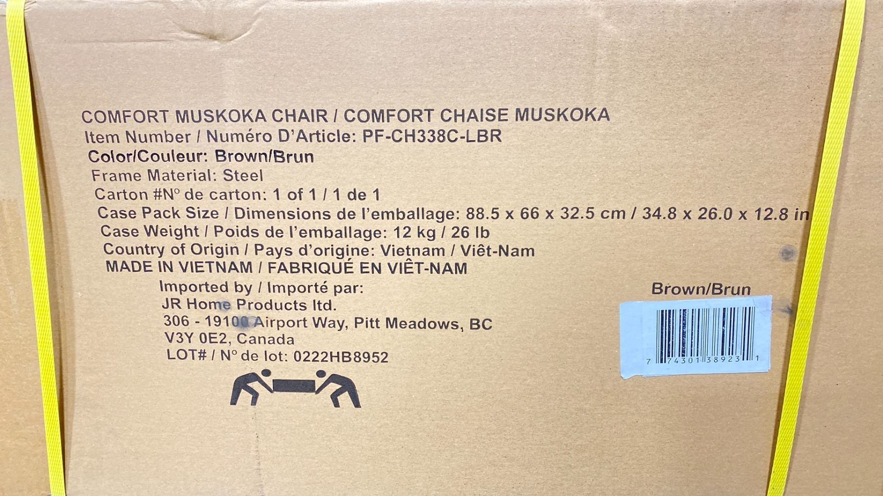 PATIOFLARE BROWN COMFORT MUSKOKA OUTDOOR PATIO CHAIR WITH CUSHION ( PF-CH338C-LBR ) *IN BOX*