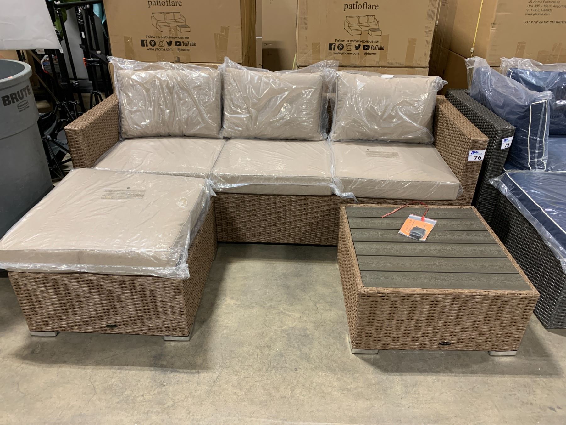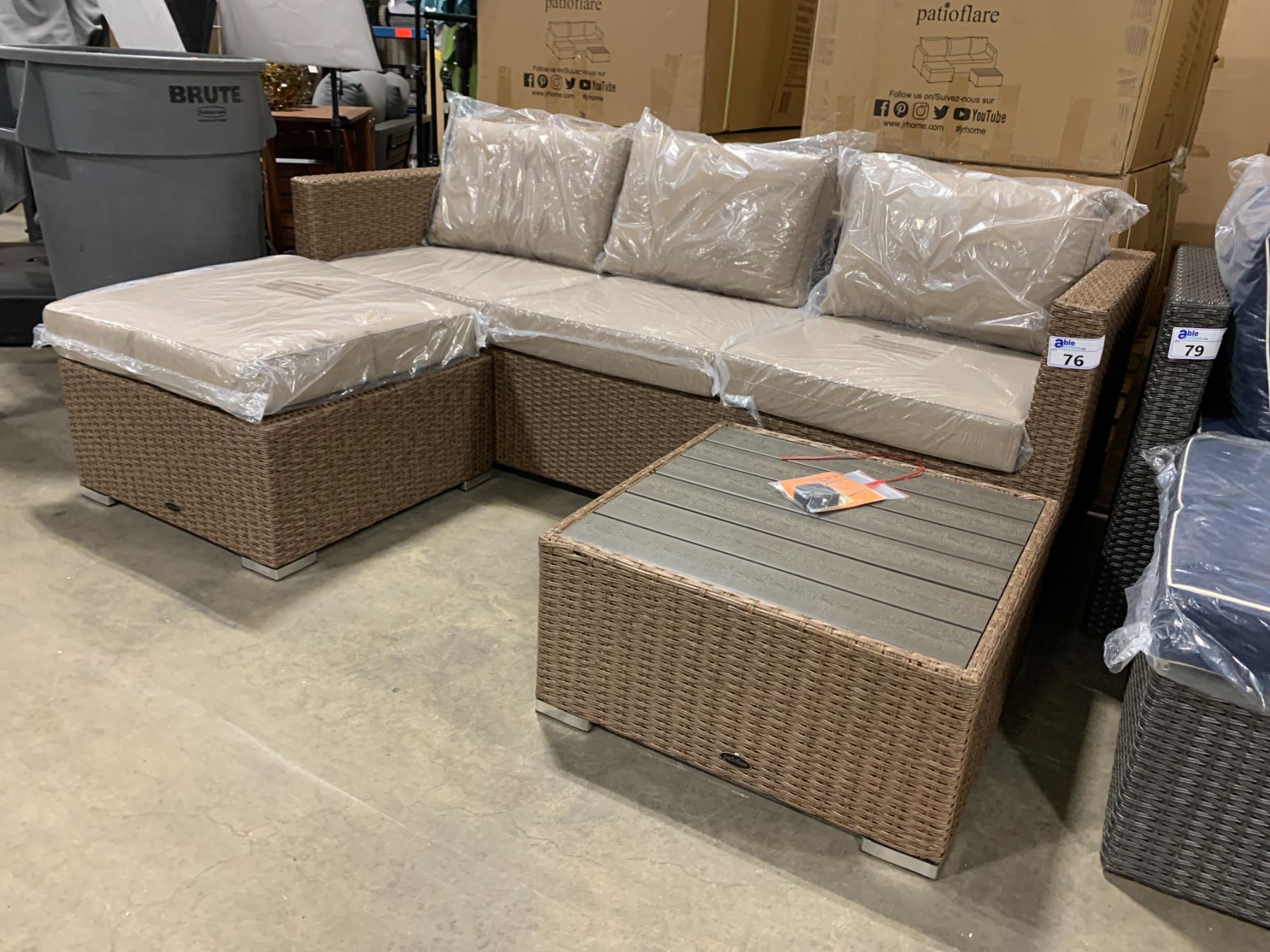 PATIOFLARE DECKSTAR BROWN RATTAN 3 PIECE OUTDOOR PATIO SET WITH BEIGE CUSHIONS * DISPLAY MODEL *