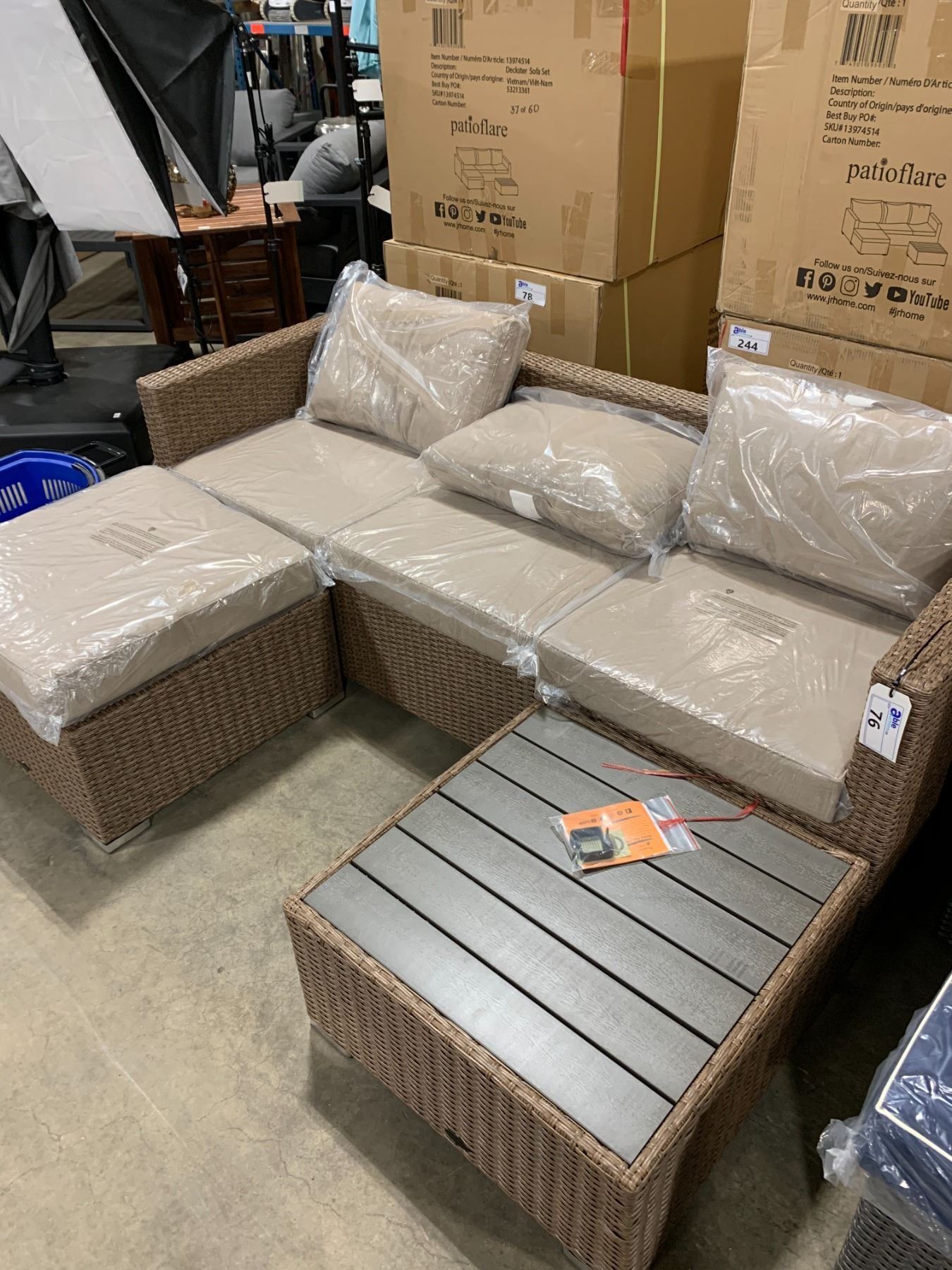 PATIOFLARE DECKSTAR BROWN RATTAN 3 PIECE OUTDOOR PATIO SET WITH RED CUSHIONS * IN BOX *