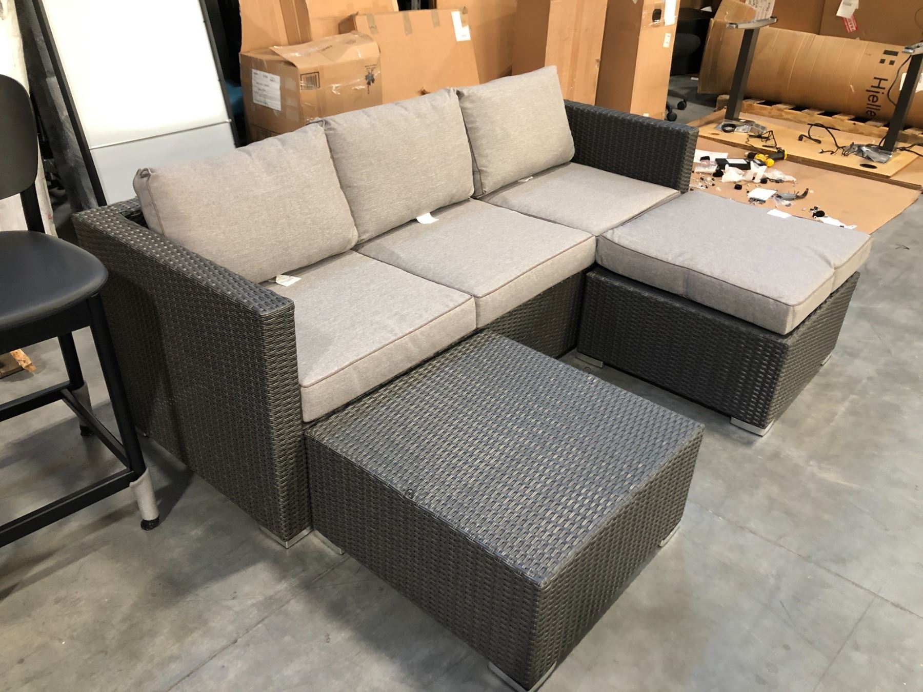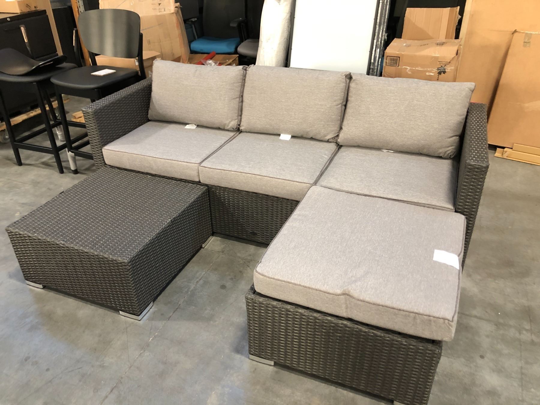 PATIOFLARE EMMETT PATIO SOFA SET, GREY WICKER AND LIGHT GREY CUSHIONS, RETAIL PRICE $1,499