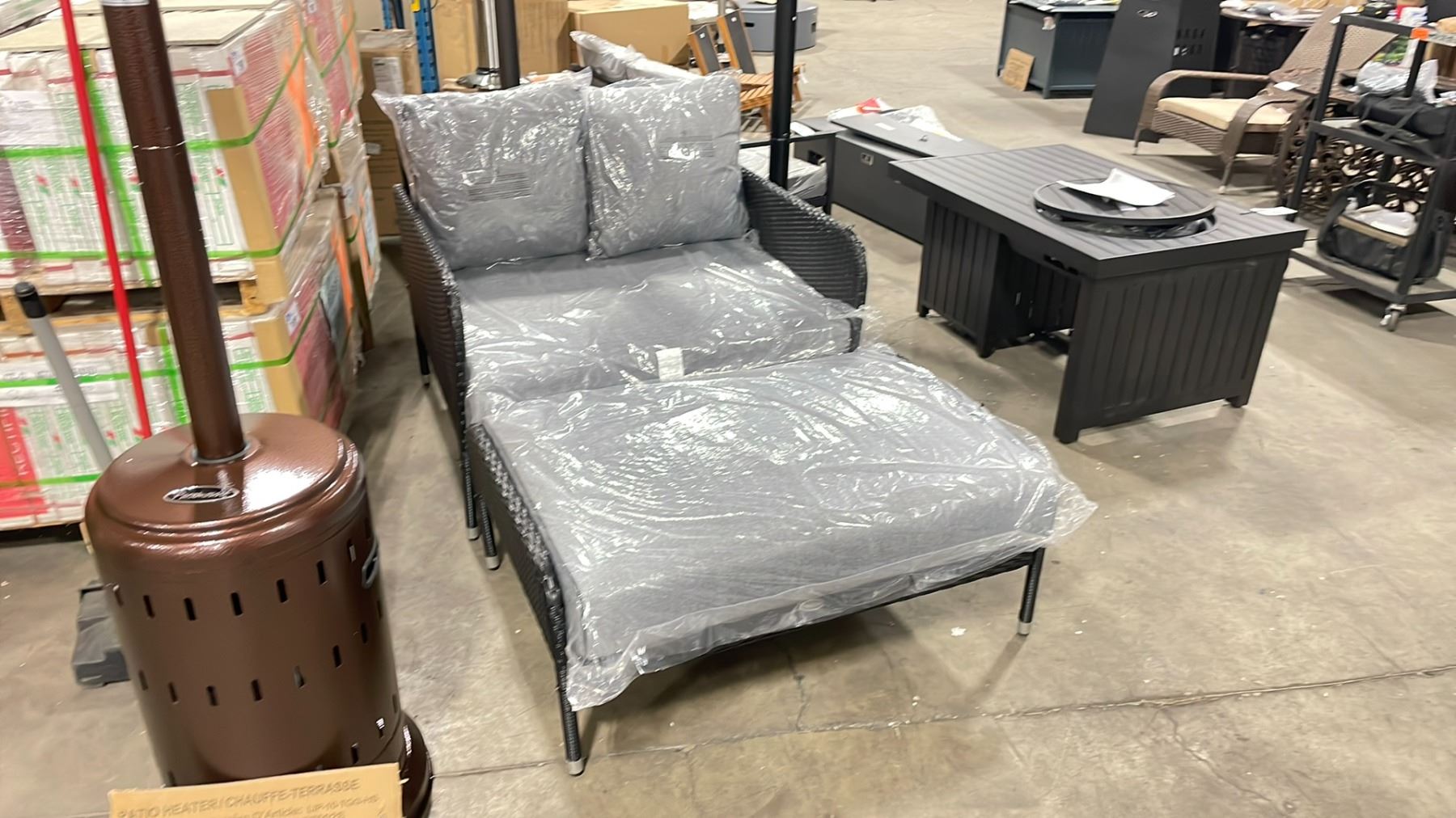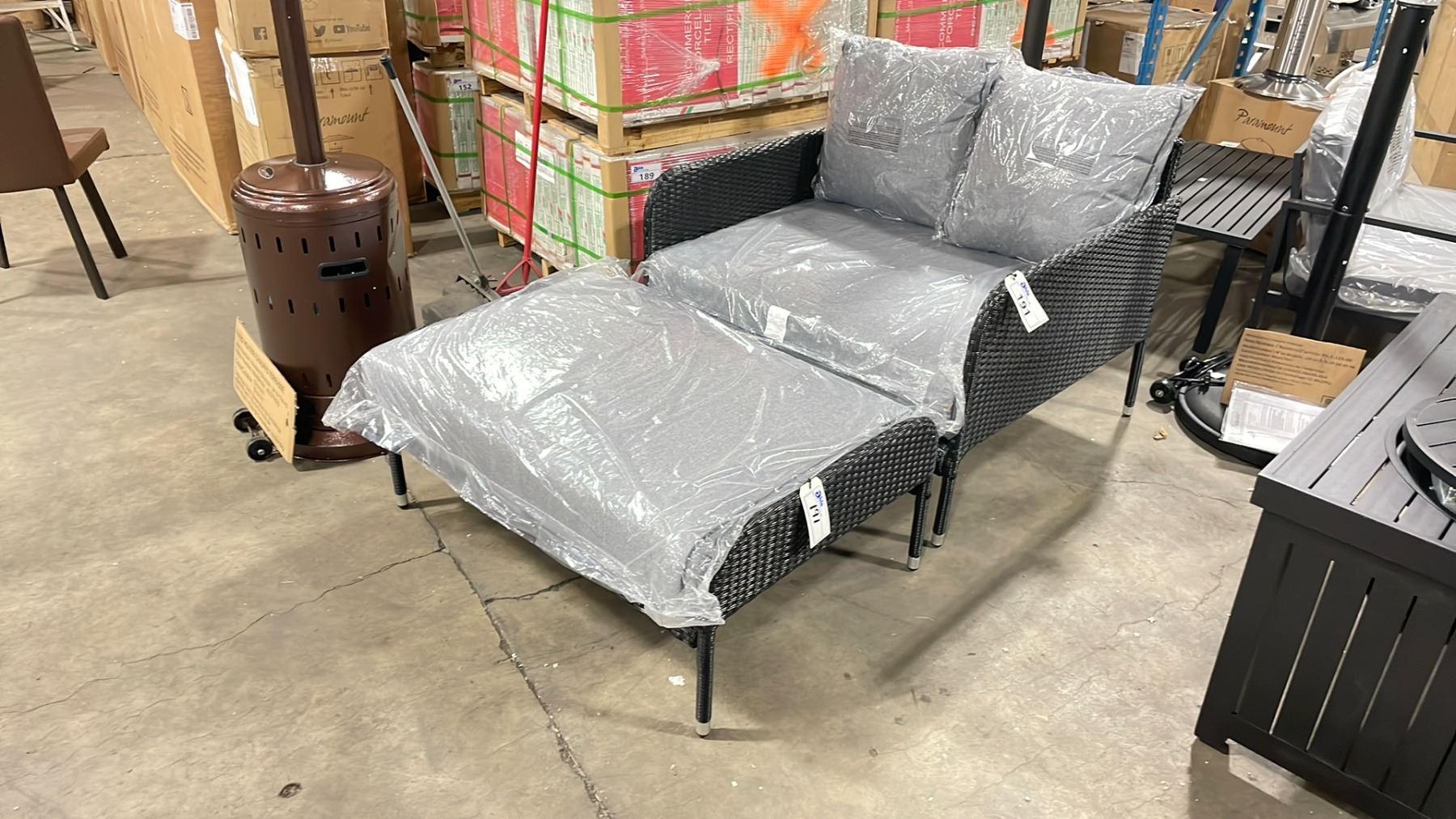 PATIOFLARE HERMAN BLACK RATTAN GREY CUSHION OVERSIZED OUTDOOR PATIO LONGER WITH OTTOMAN *DISPLAY ONLY, NOT IN BOX, NEW*
