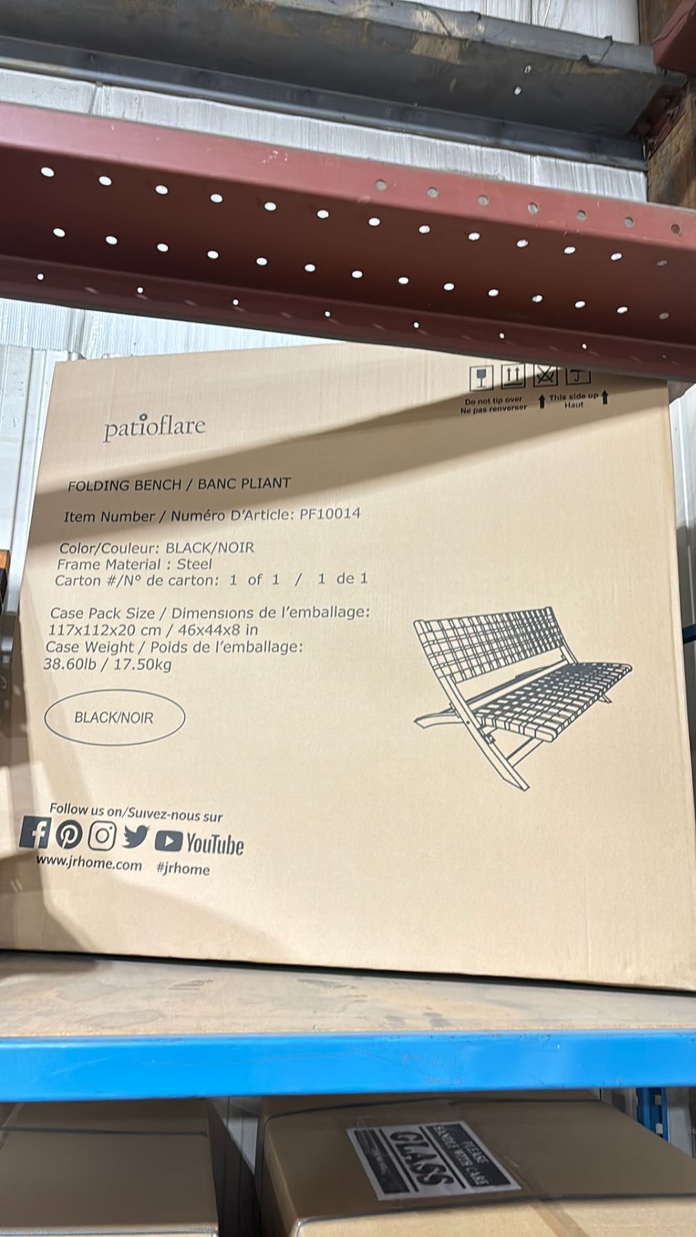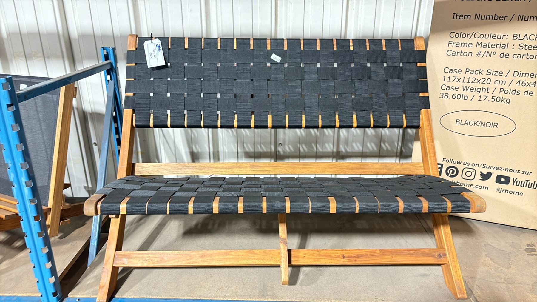 PATIOFLARE PF10014 TEAK FRAMED BLACK MESH FOLDING 2 SEAT OUTDOOR PATIO BENCH *IN BOX*