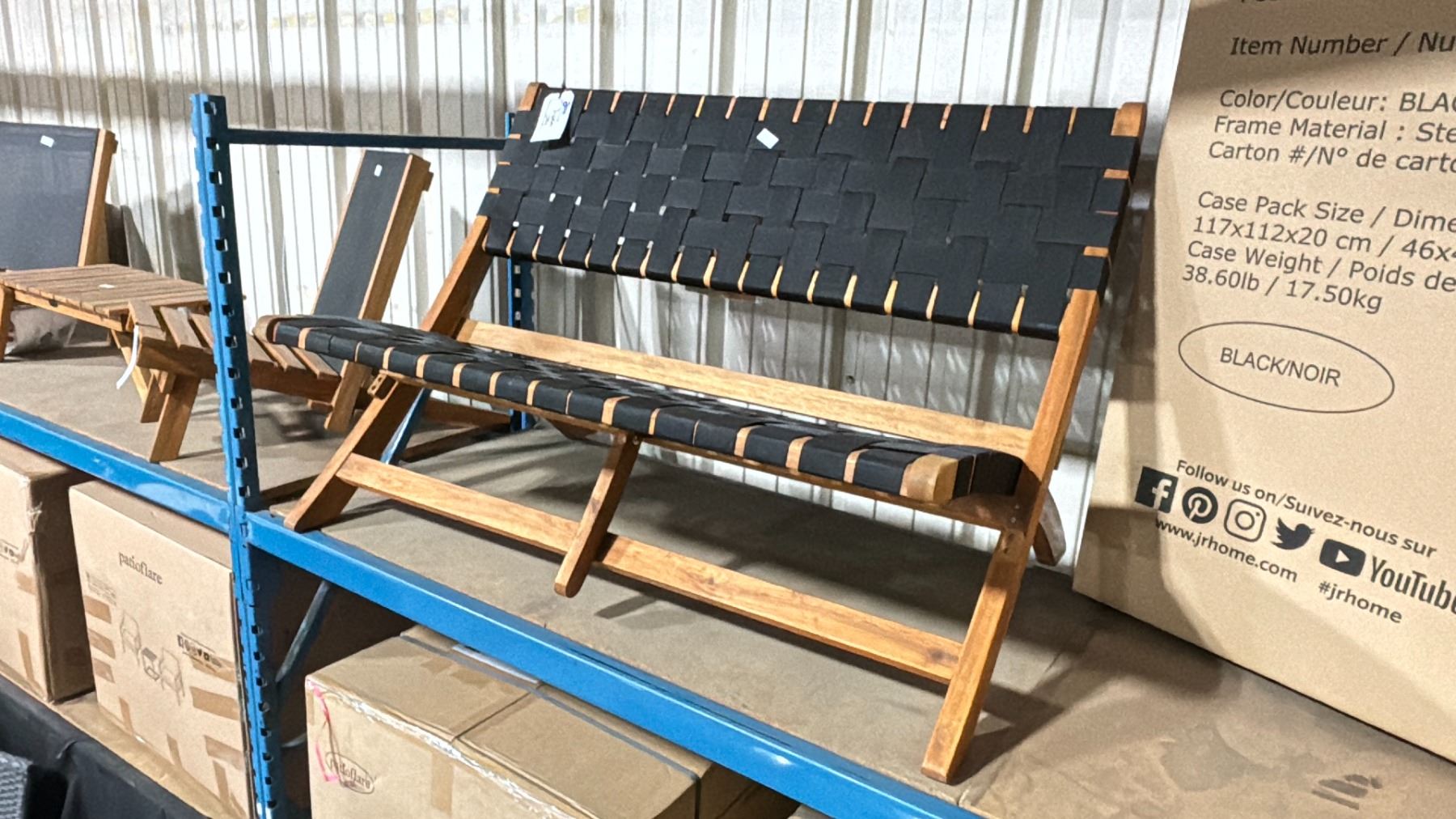 PATIOFLARE PF10014 TEAK FRAMED BLACK MESH FOLDING 2 SEAT OUTDOOR PATIO BENCH **DISPLAY MODEL**