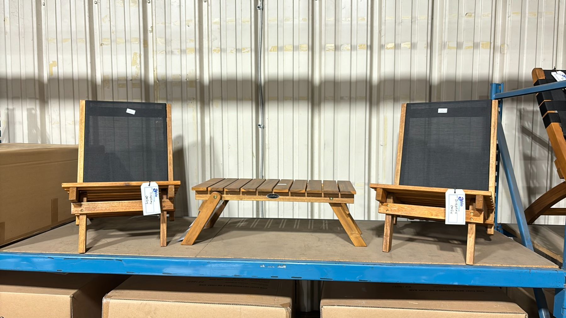 PATIOFLARE PF10078 TEAK WOOD / BLACK 3PCS OUTDOOR LAKESIDE LAZY LOUNGER SET *IN BOX*