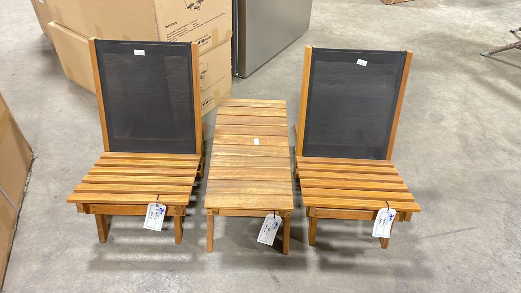 PATIOFLARE PF10078 TEAK WOOD / BLACK 3PCS OUTDOOR LAKESIDE LAZY LOUNGER SET *IN BOX*