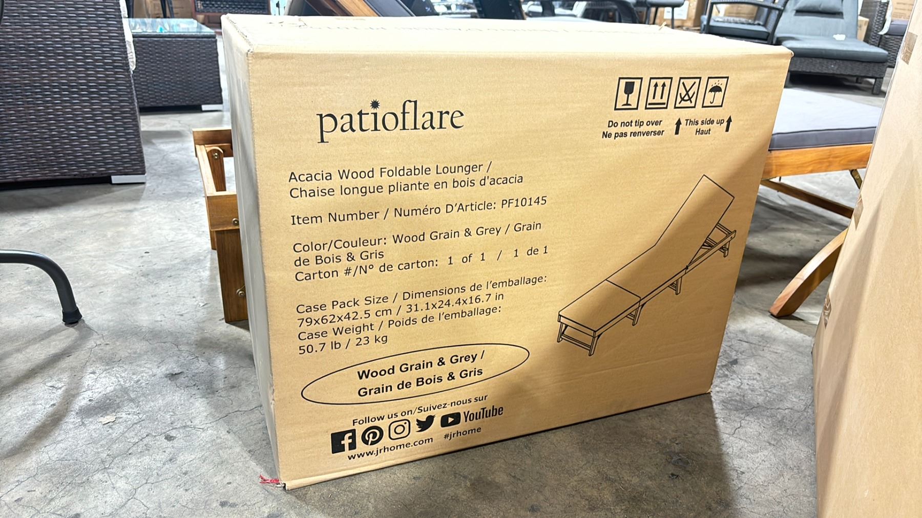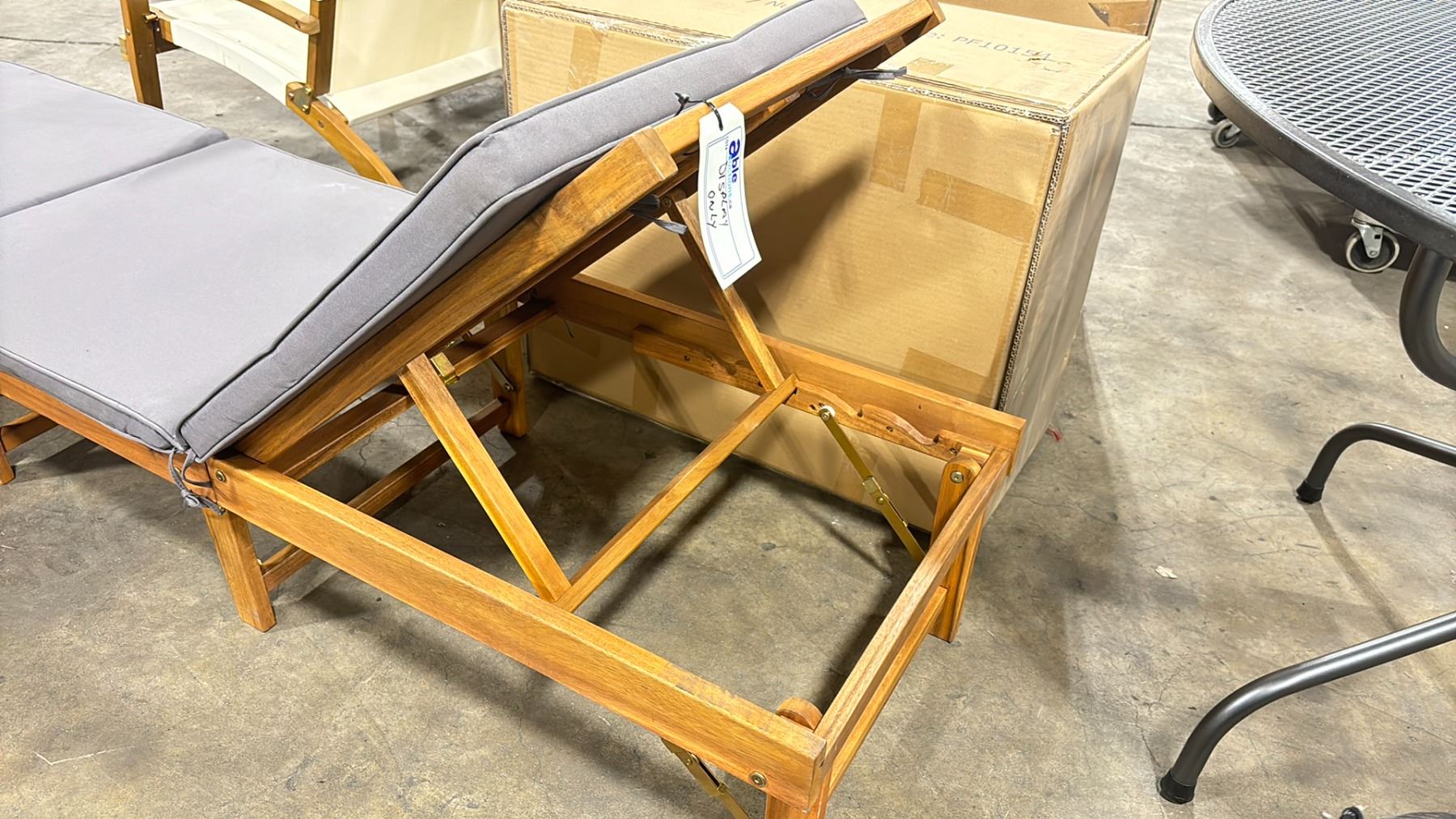 PATIOFLARE PF10145 ACACIA WOODEN FOLDABLE OUTDOOR PATIO LOUNGER WITH A GREY CUSHION *IN BOX*