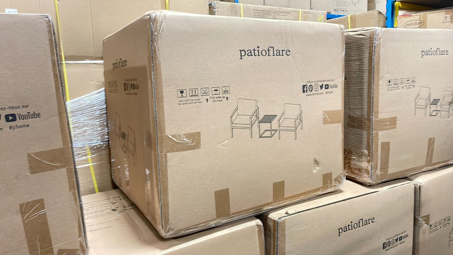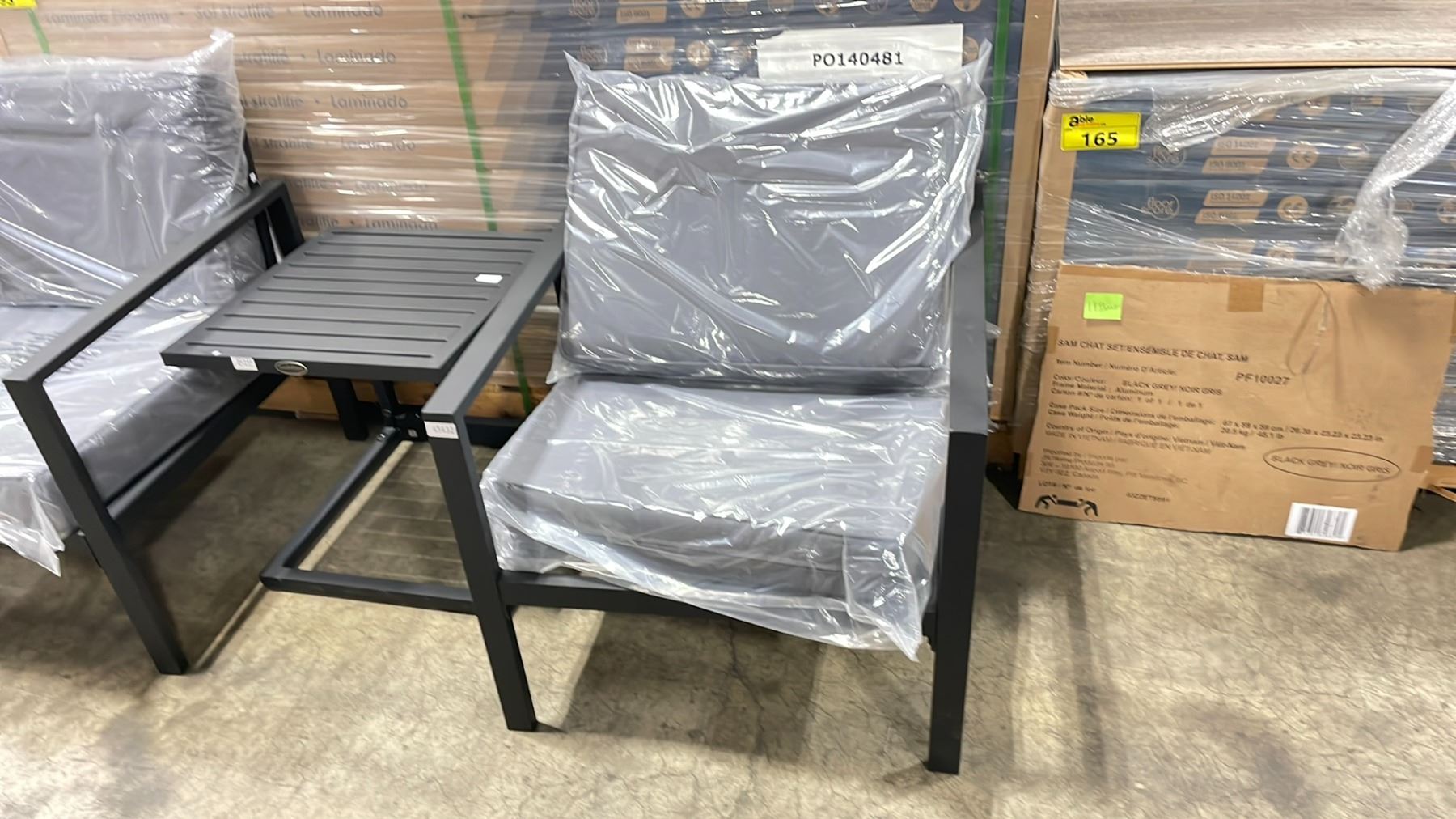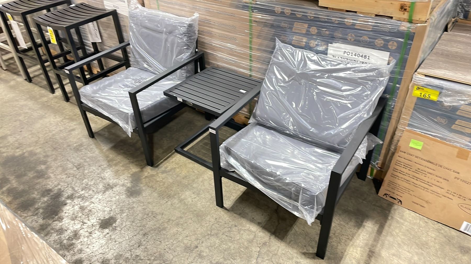 PATIOFLARE SAM 3 PC BLACK CAST ALUMINUM OUTDOOR PATIO CHAT SET WITH GREY CUSHIONS *IN BOX*