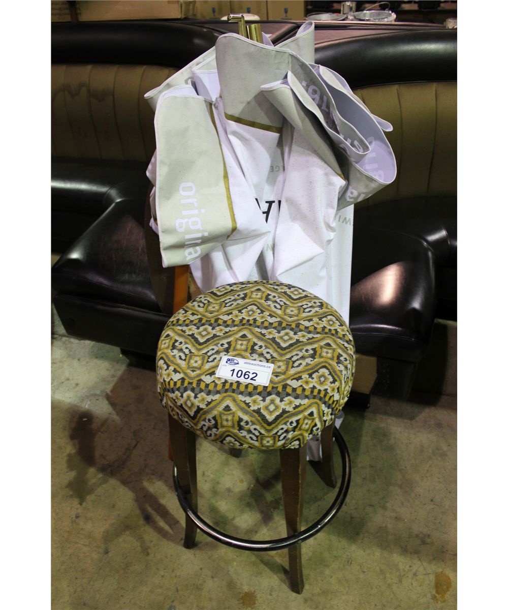 PATTERNED STOOL AND PATIO BEER UMBRELLA