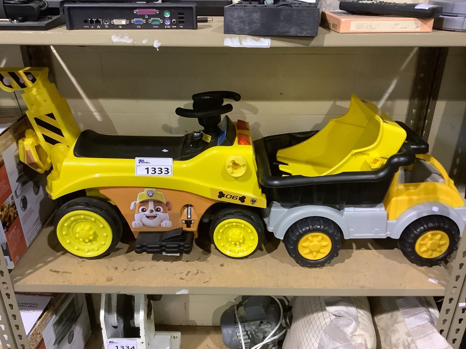 PAW PATROL RUBBLE RIDE ON (NO CHARGER UNKNOWN CONDITION) AND A TRUCK