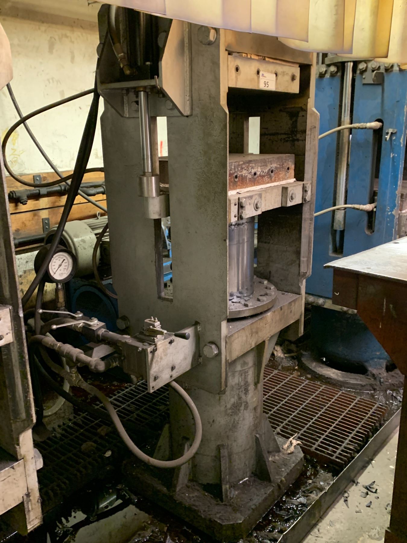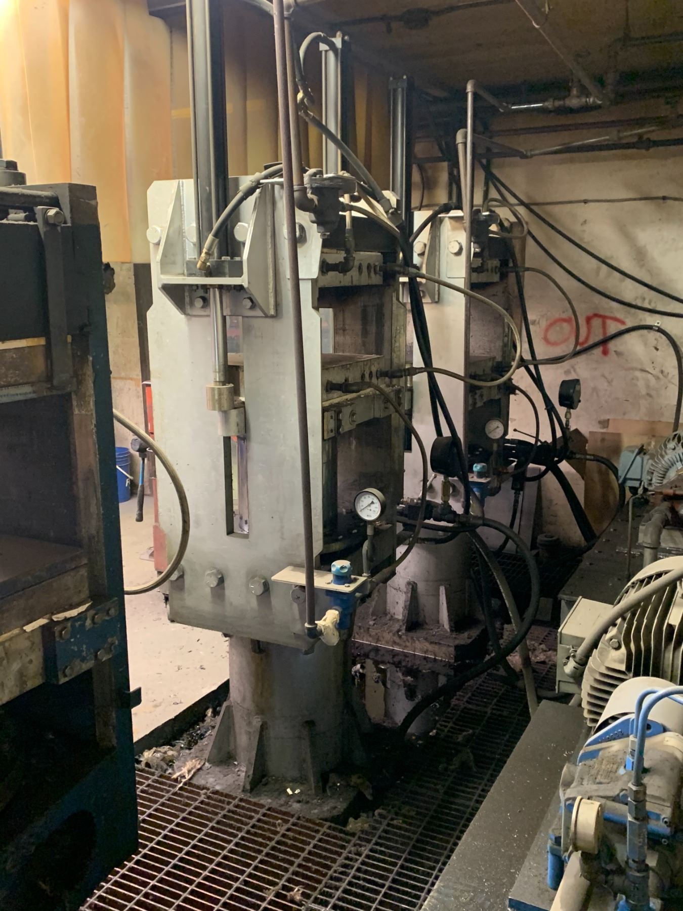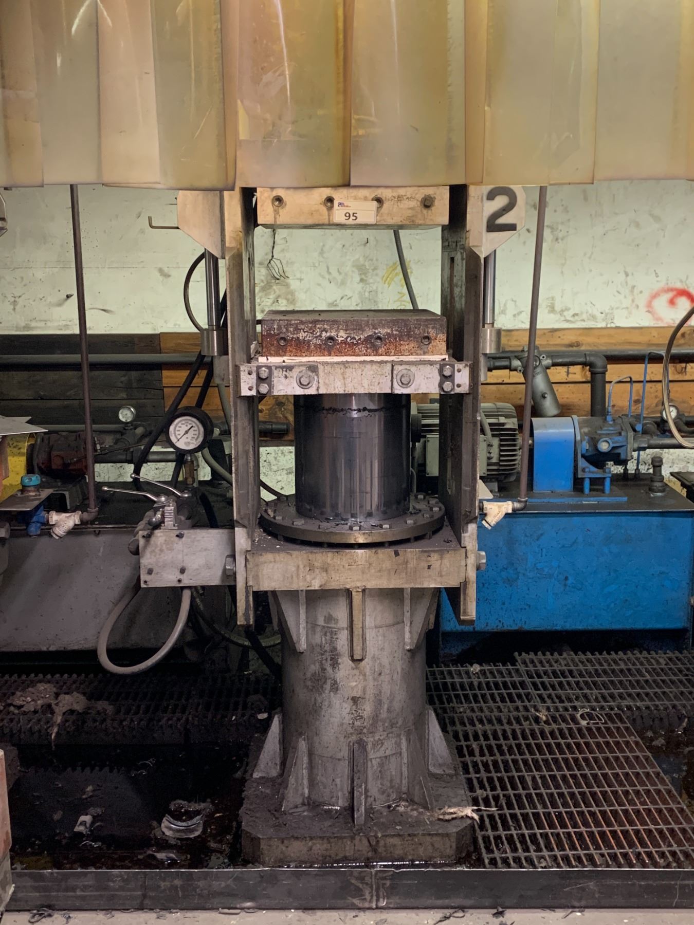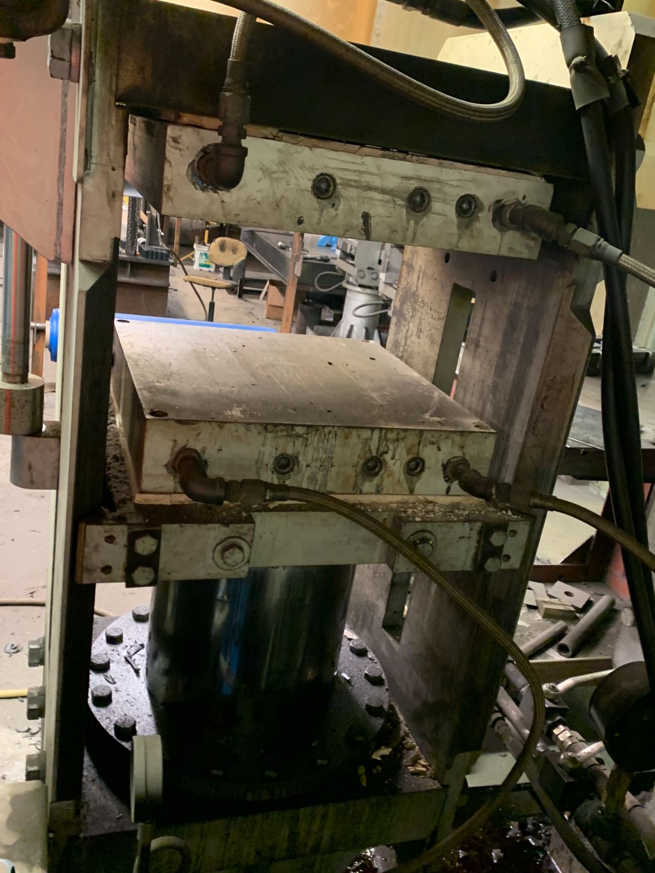 *PC* GREY 18" X 18" SQUARE INDUSTRIAL HEAVY DUTY HYDRAULIC CYLINDER PRESS WITH HAND CONTROLS *MUST HAVE PROPER CREW AND TECHNICIAN TO DISCONNECT*