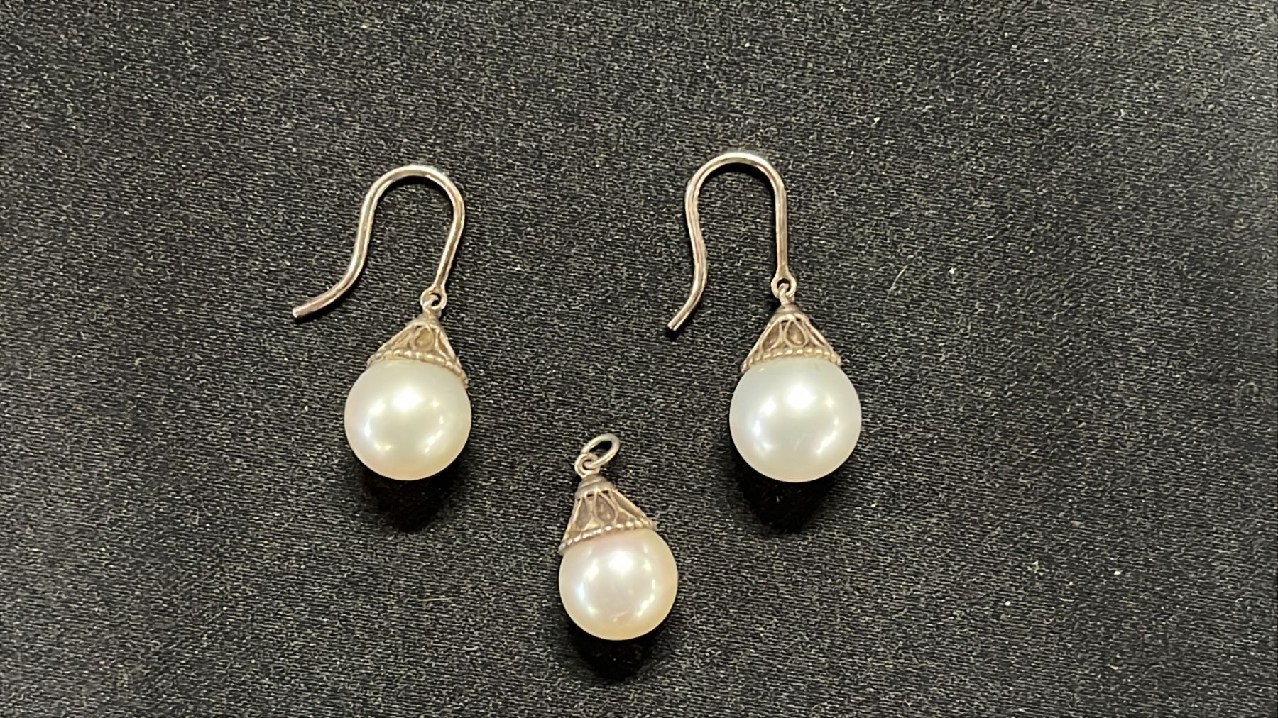 PEARL EARRINGS & PENDANT & (3) PAIRS OF CRYSTAL EARRINGS