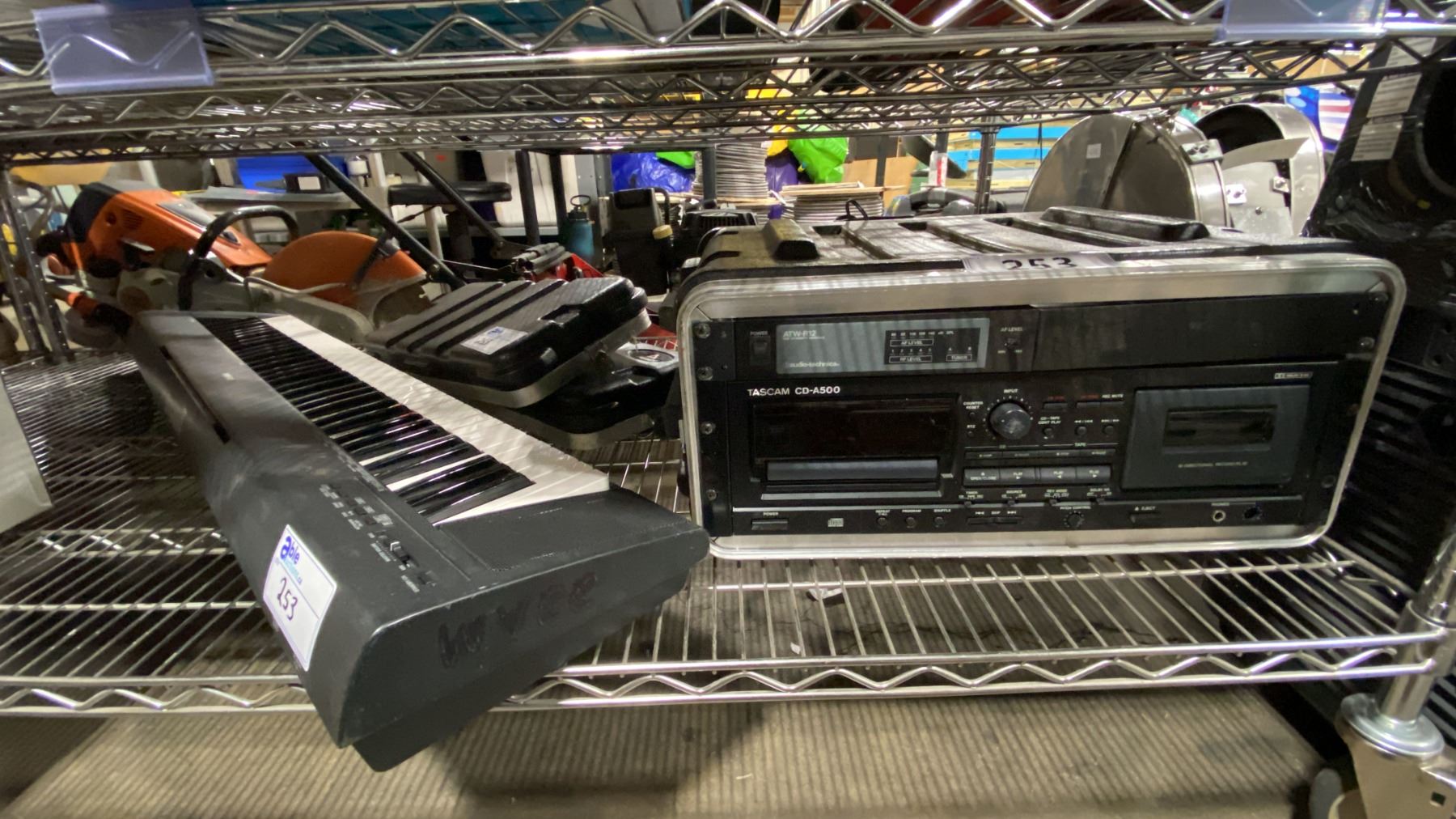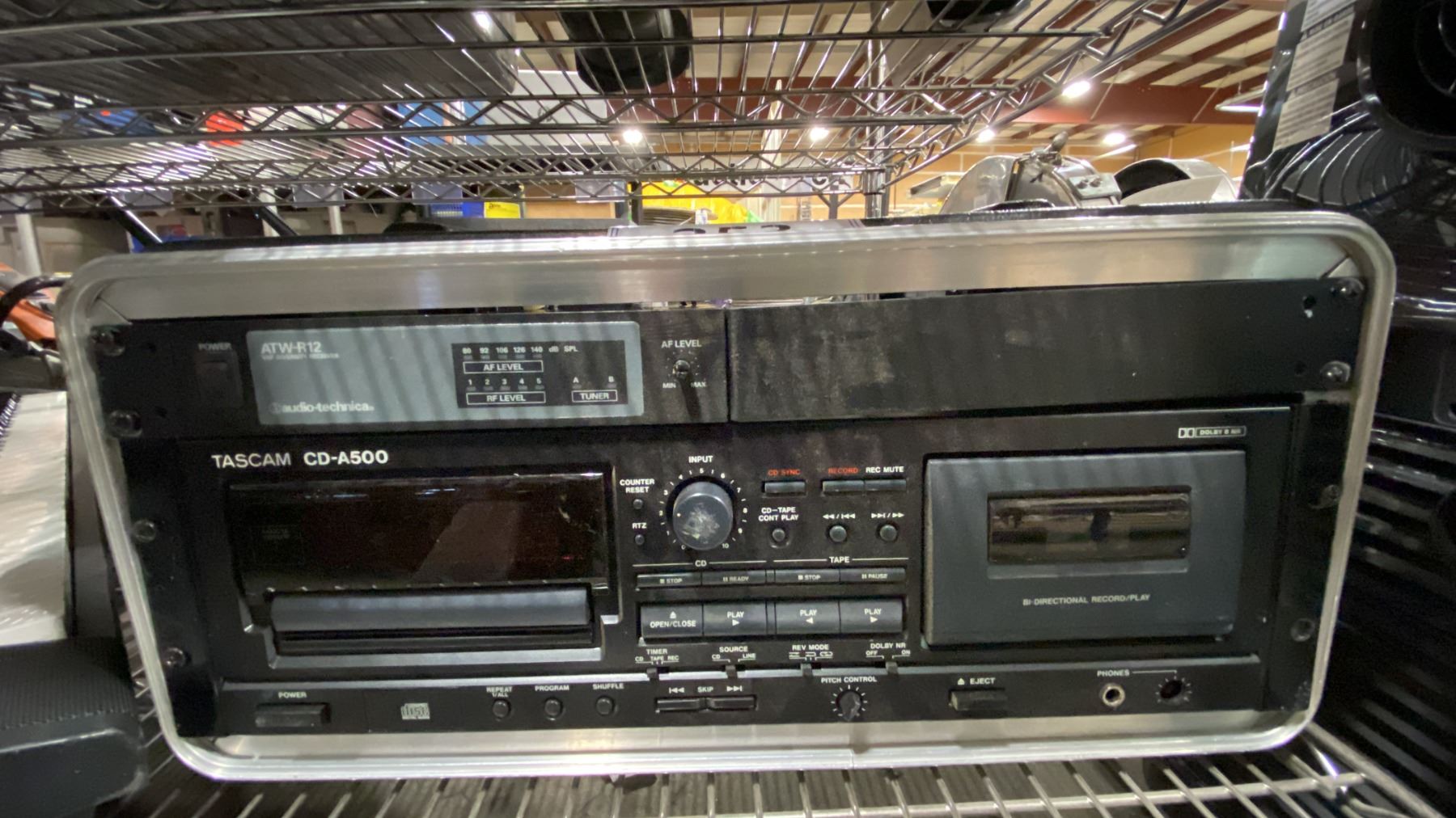 PEAVY PORTABLE ROAD CASE SYSTEM WITH TASCAM CD-A500 RACK MOUNTED MODULE & AUDIO-TECHNICA ATW-R12 RACK MOUNTED VHF DIVERSITY RECEIVER & ELECTRIC KEYBOARD *NO POWER CABLE*