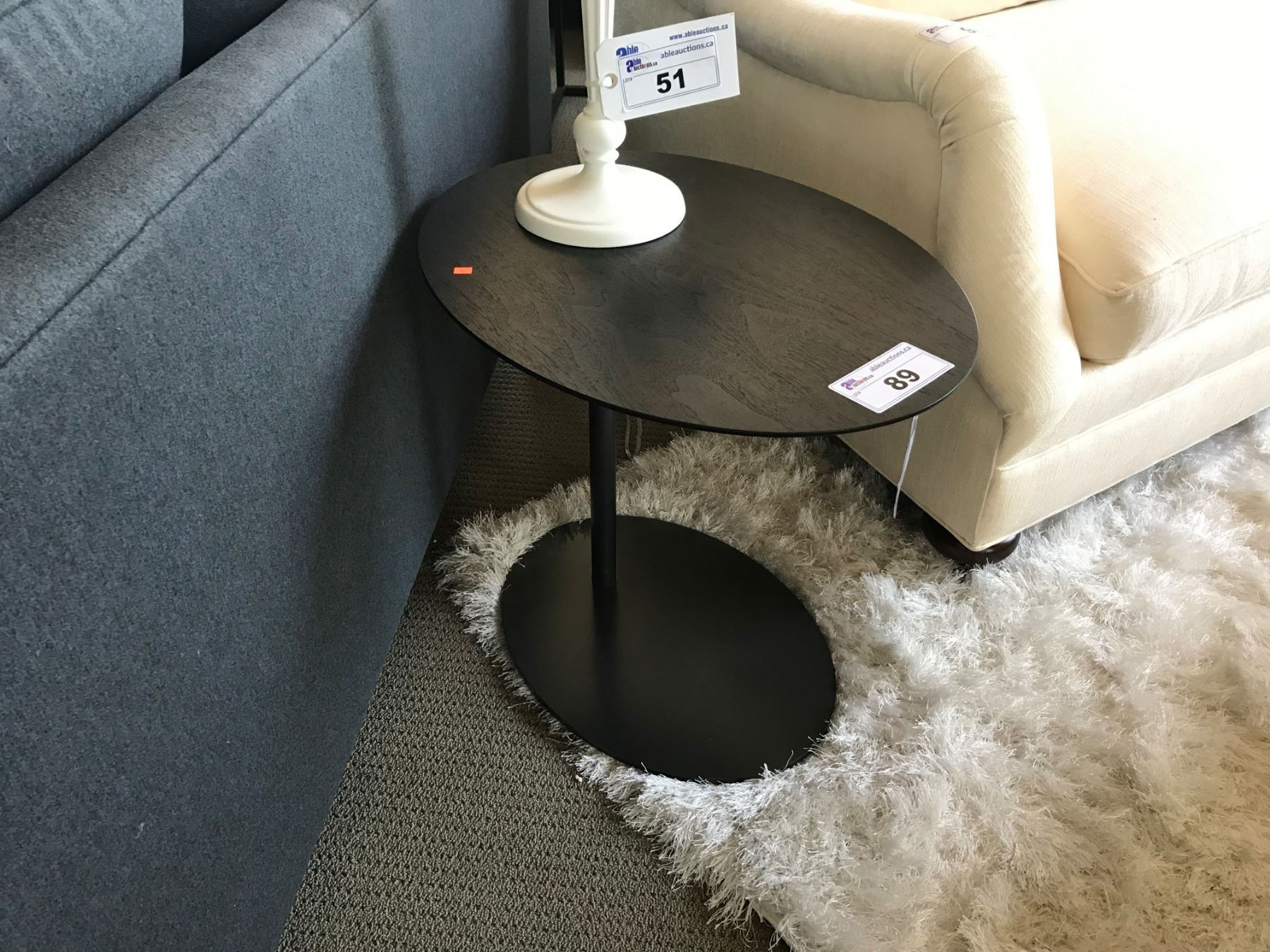 PEBBLE DARK WOOD & METAL OVAL END TABLE
