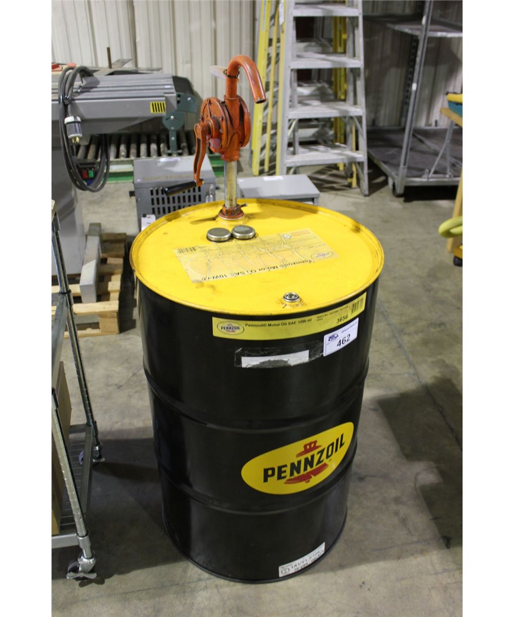 PENNZOIL STORAGE BARREL WITH HAND PUMP