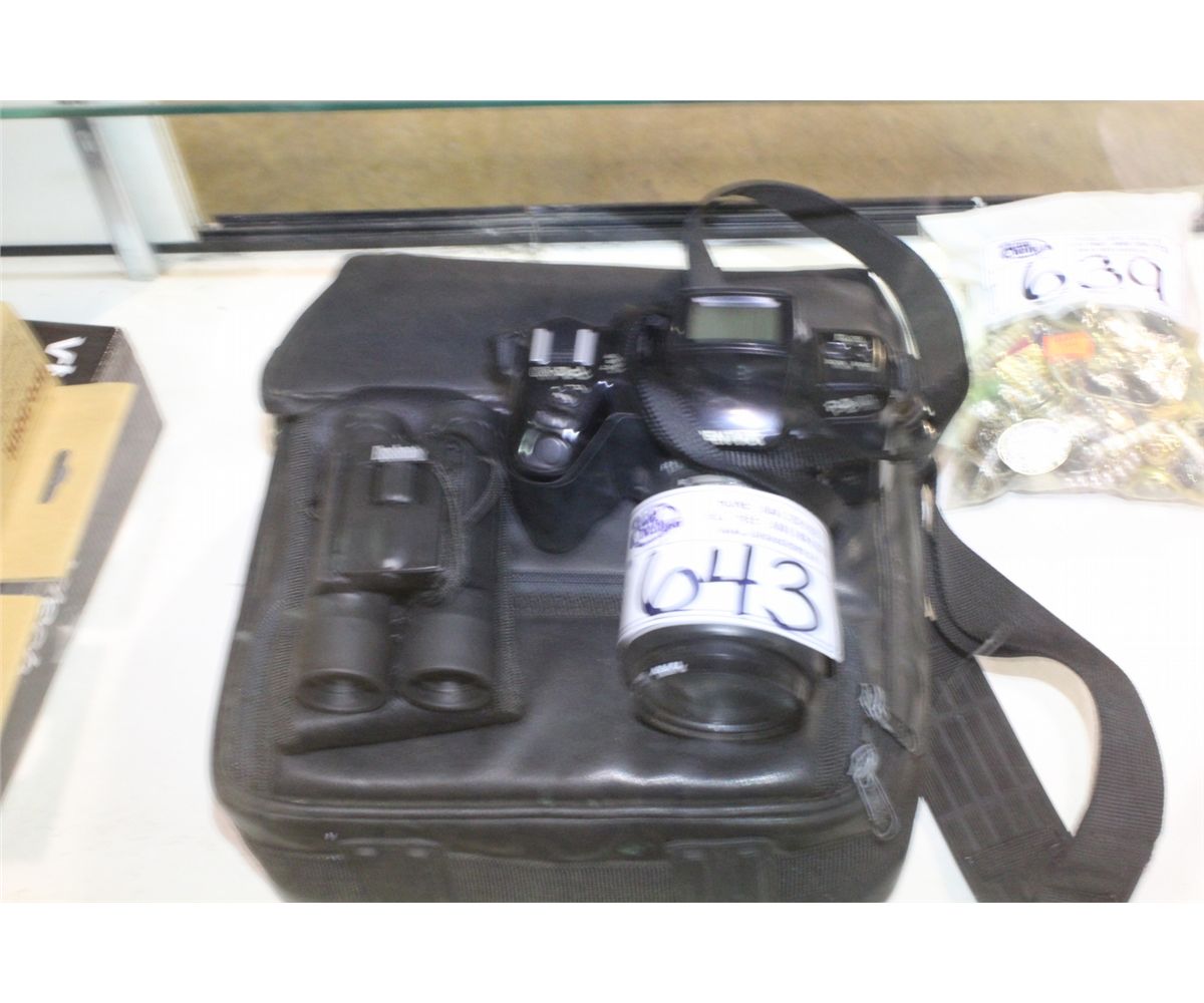 PENTAX PZ20 SLR CAMERA WITH CASE AND BINOCULARS