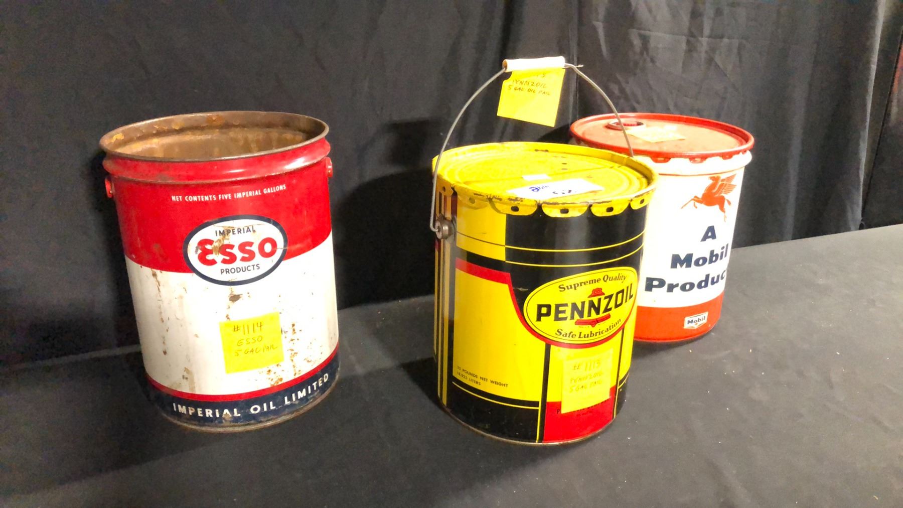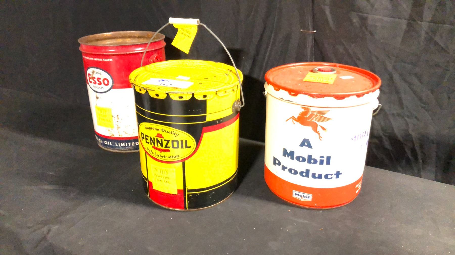 PENZOIL, ESSO AND MOBILE 5 GALLON OIL PAILS