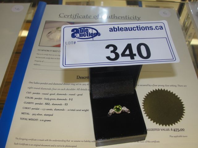 PERIDOT DINNER RING SET WITH 8 DIAMONDS INCLUDES $475 CERTIFICATE
