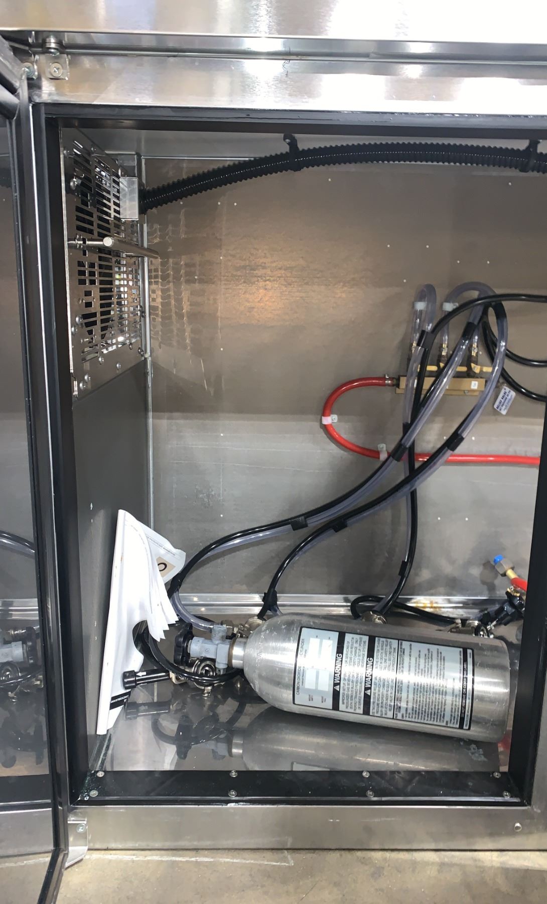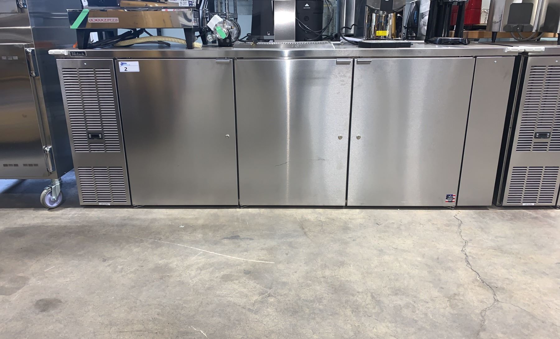 PERLICK DDC92-RF-S-N-T-H1 3 DOOR STAINLESS STEEL COMMERCIAL BACK BAR WITH 6 SPOUT BAR TAP SYSTEM 92"W X 25"D X 35"H - 48"H TO TAP