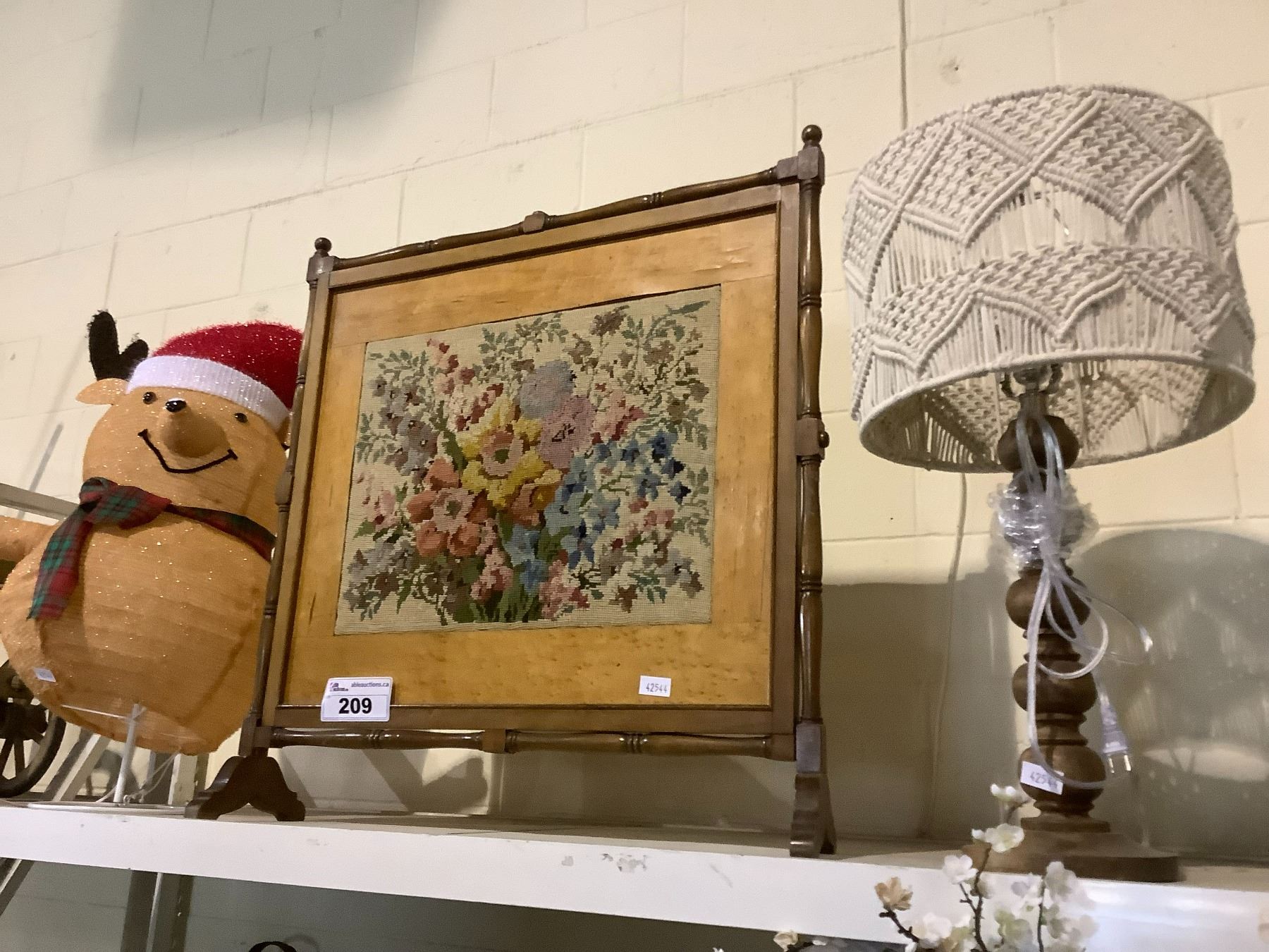 PETTIPOINT ART PIECE, LAMP, AND CHRISTMAS BEAR