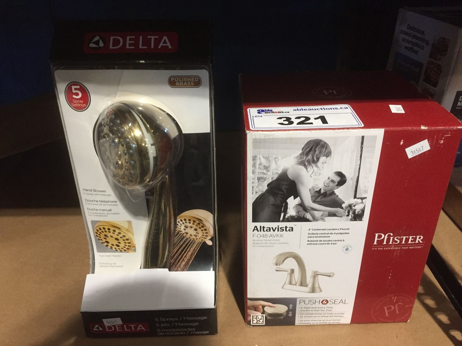 PFISTER 4" CENTER SET LAVATORY FAUCET & DELTA 5 SPRAY MASSAGE SHOWER HEAD