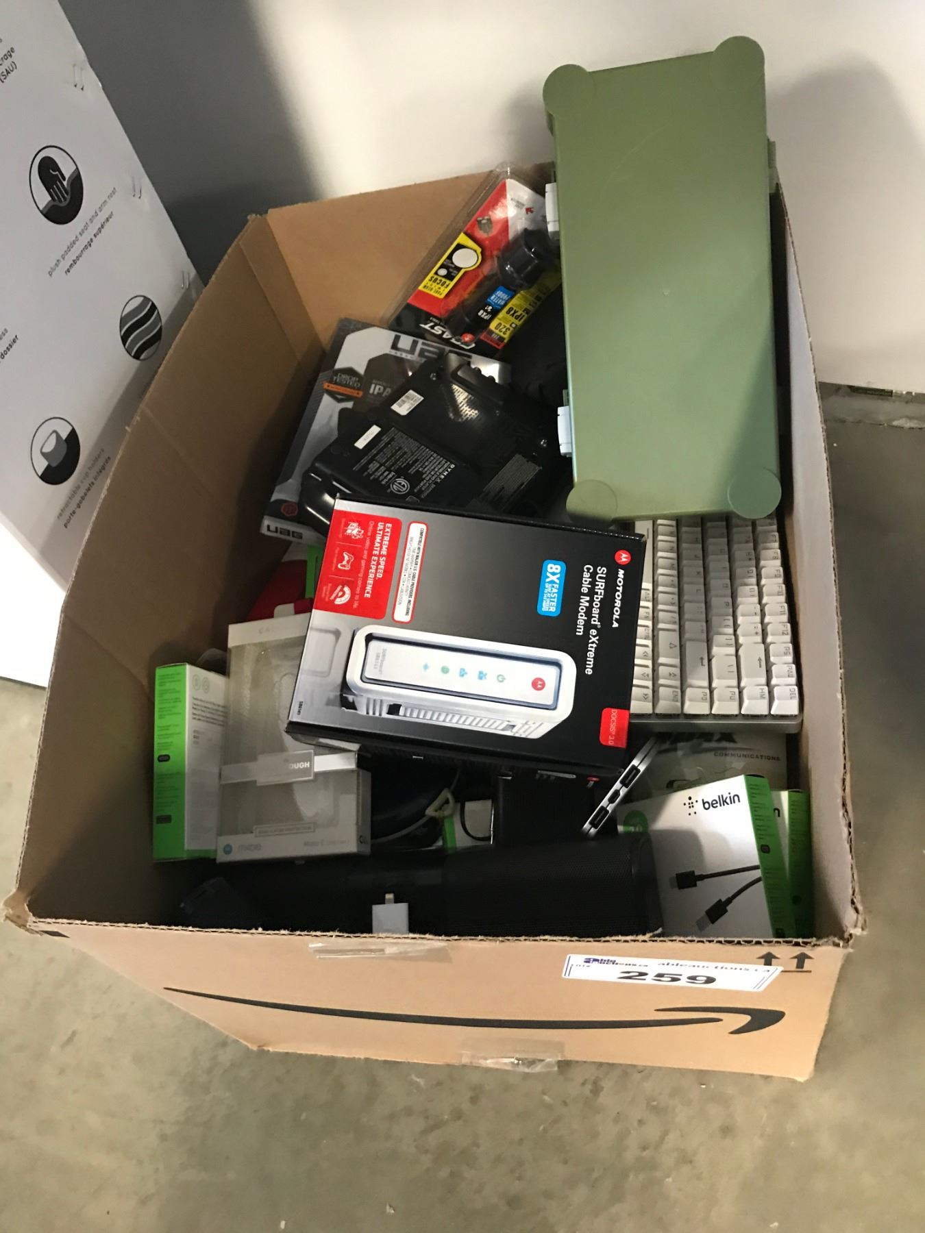 PHONE & TABLET CASES, CHARGING CORDS, PORTABLE DVD PLAYER, WALKMAN, RADIO, IPOD SPEAKER DOCK, KEYBOARD, POWERBANKS, FLASHLIGHT, MOTOROLA SURFBOARD EXTREME CABLE MODEM, ETC