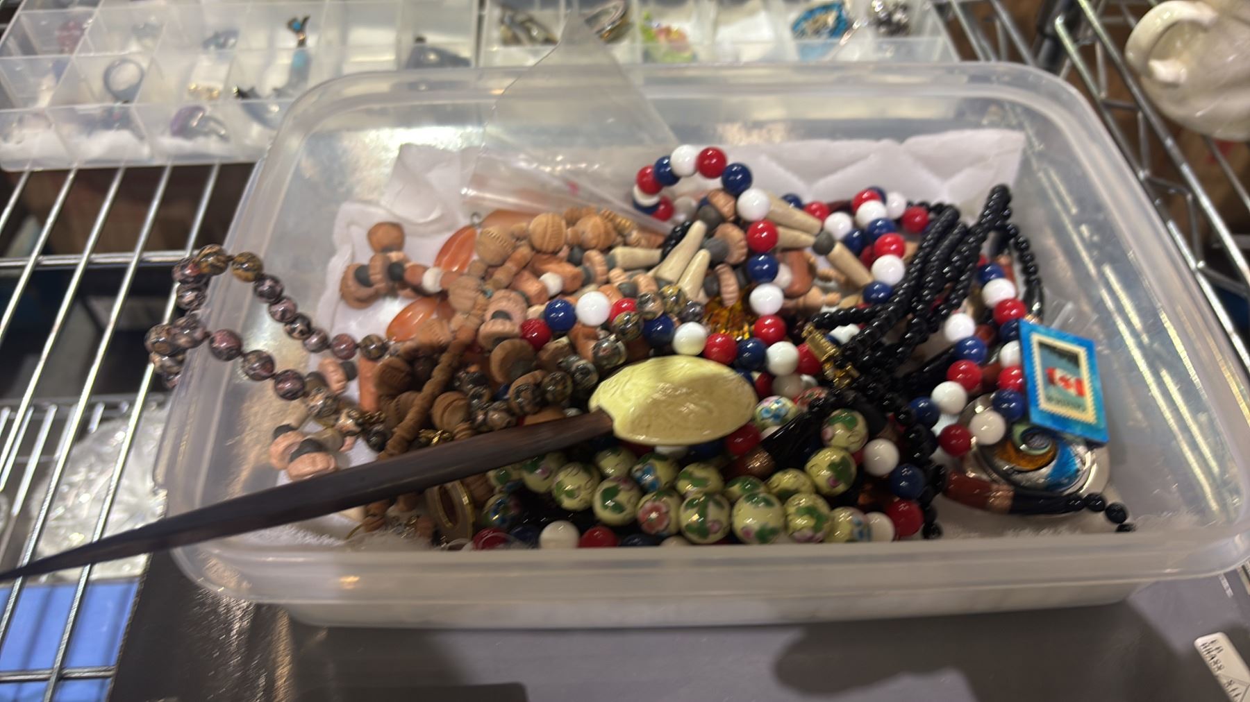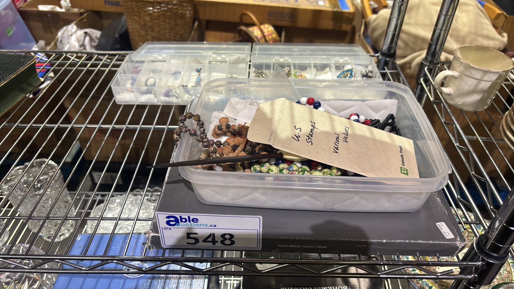 PHOTO FRAME, ASSORTED COSTUME JEWELLERY, US STAMPS & MORE