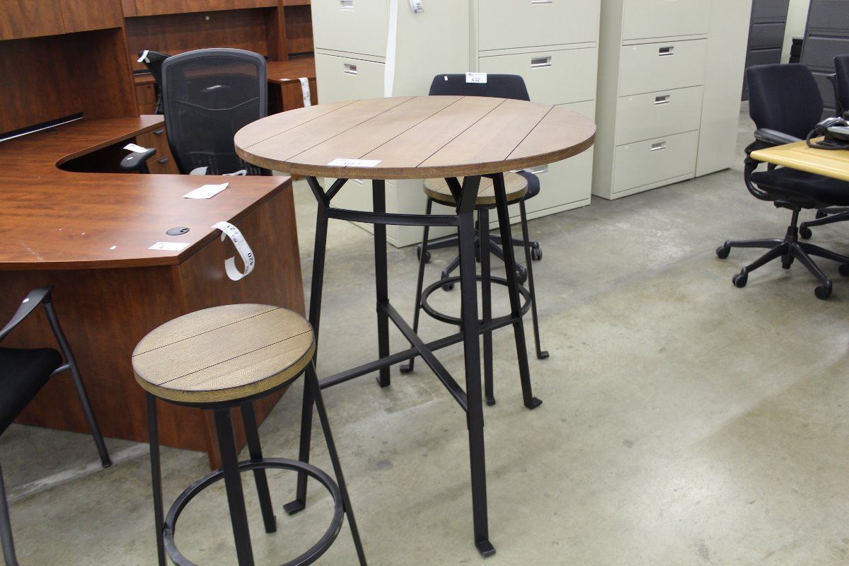 PINE FINISH AND BLACK PATIO SET WITH TABLE AND 2 MATCHING CHAIRS