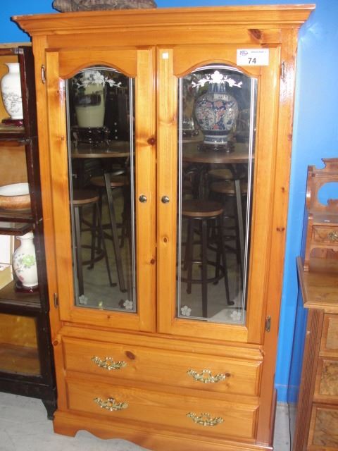 PINE MIRRORED FRONT HIGH BOY DRESSER