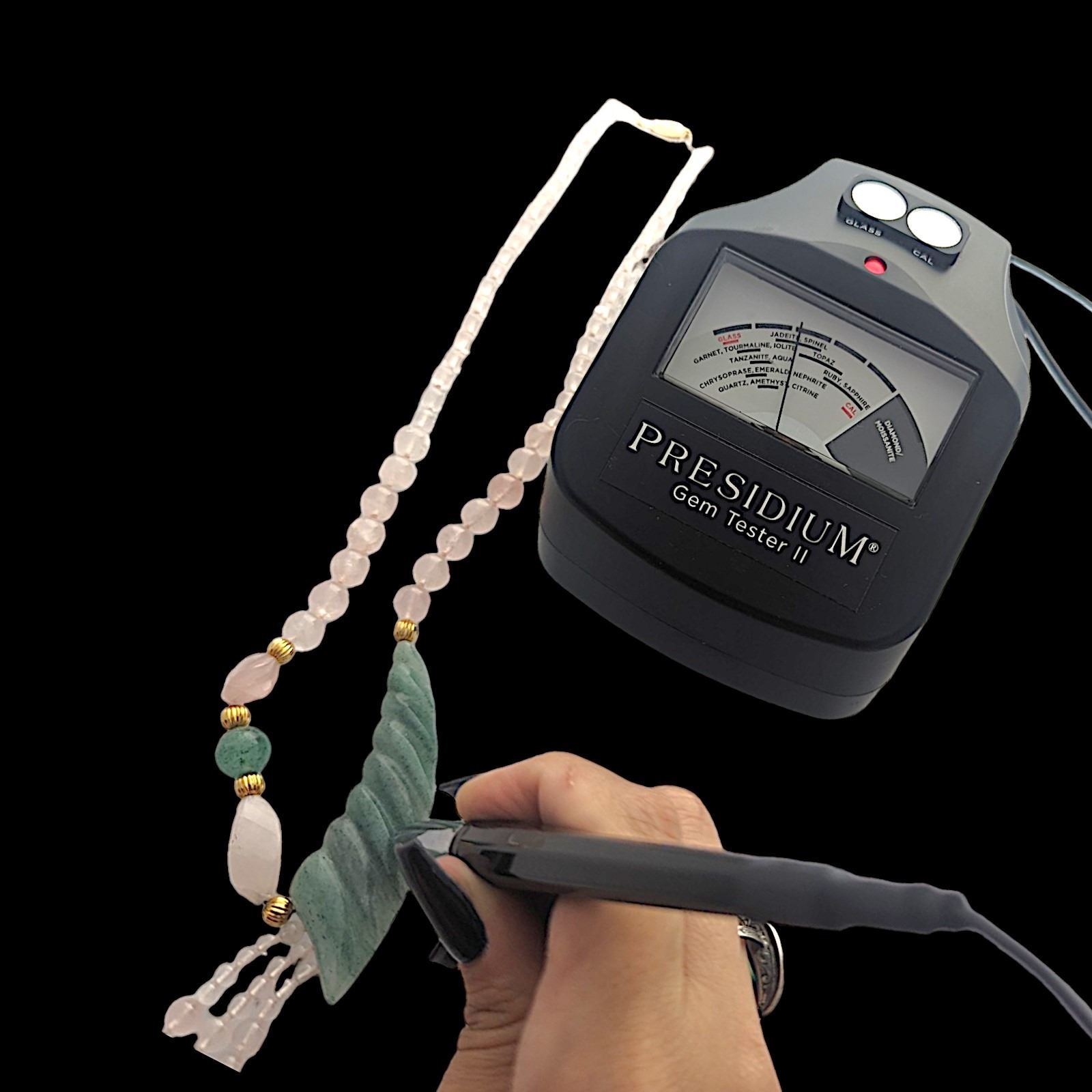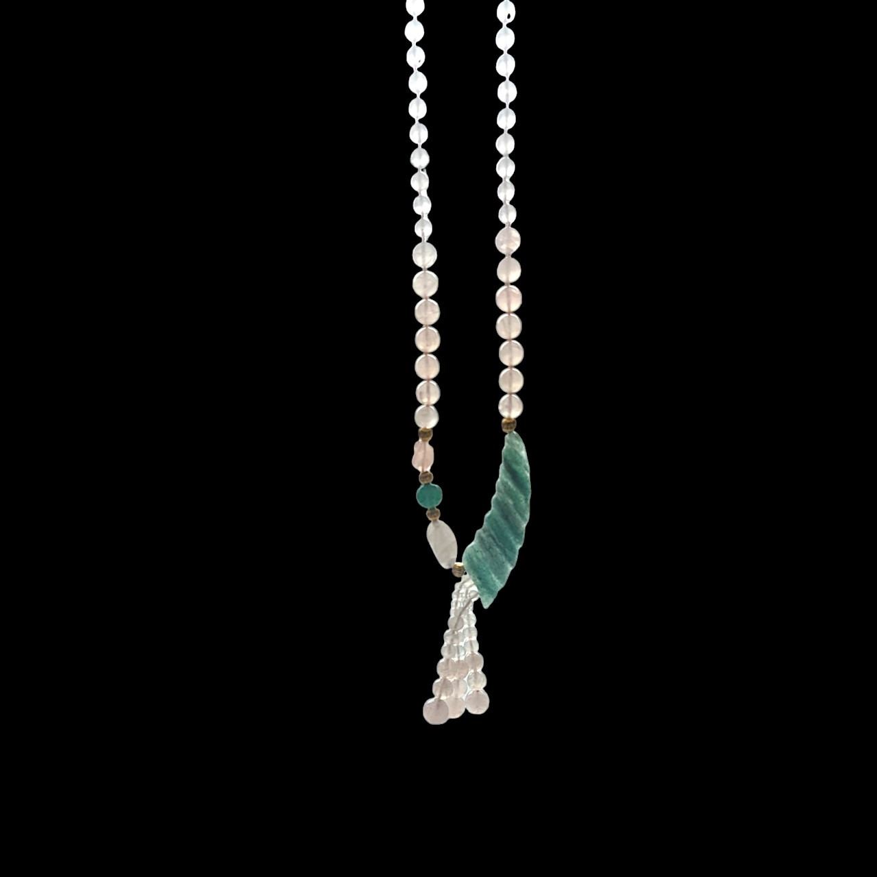 PINK GREEN JADE BLADE CARVED FRINGE STONE NECKLACE