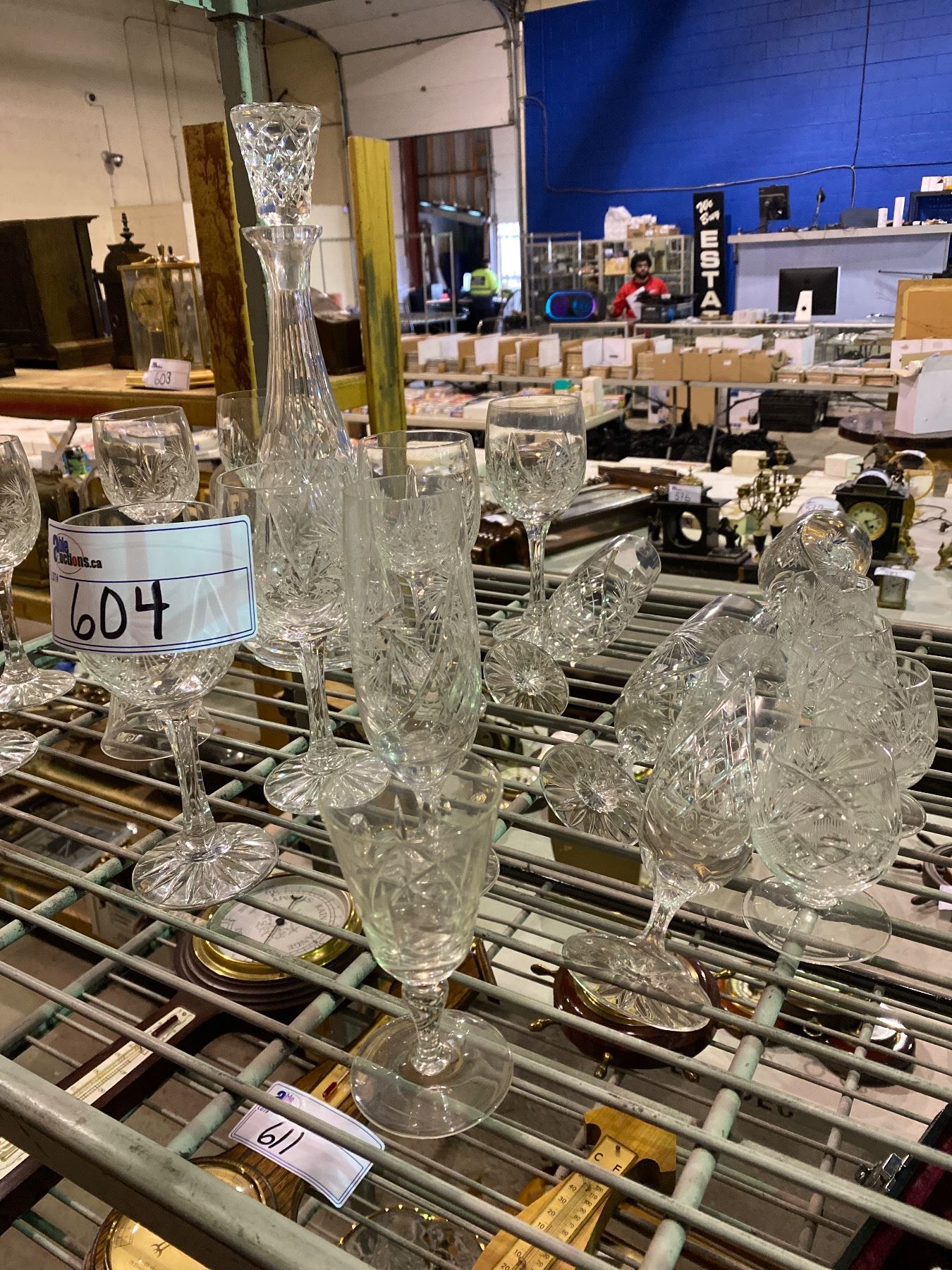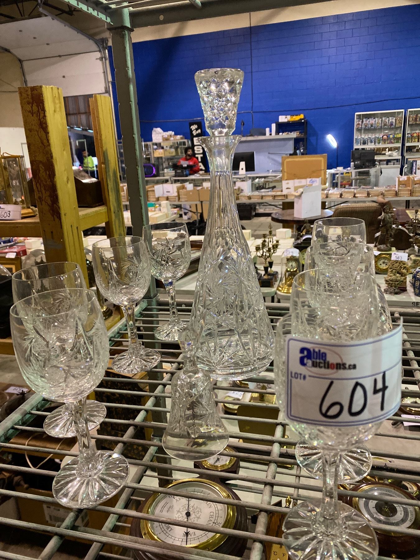 PINWHEEL CRYSTAL GLASSES AND DECANTER