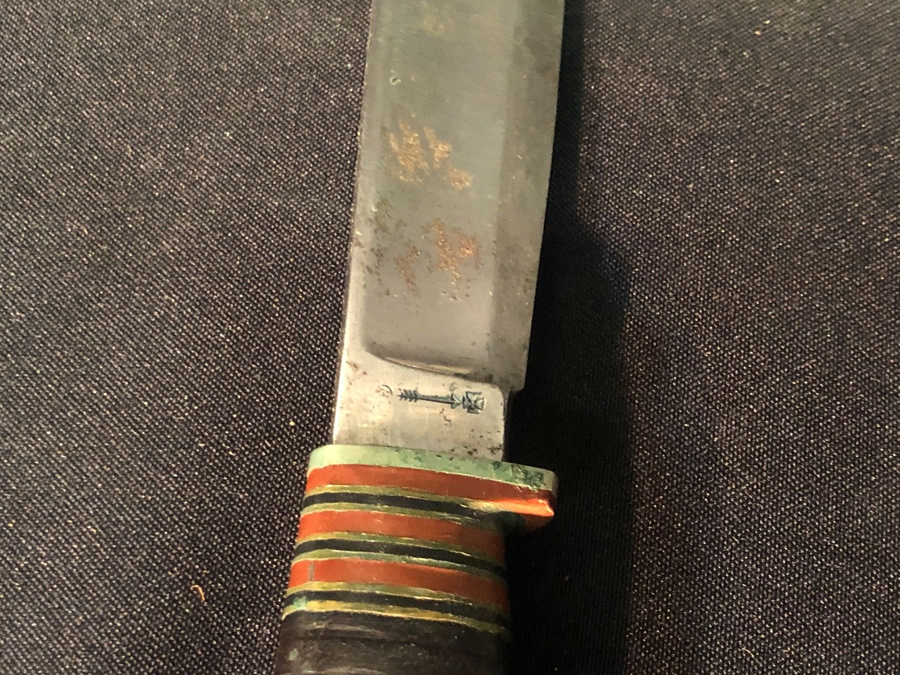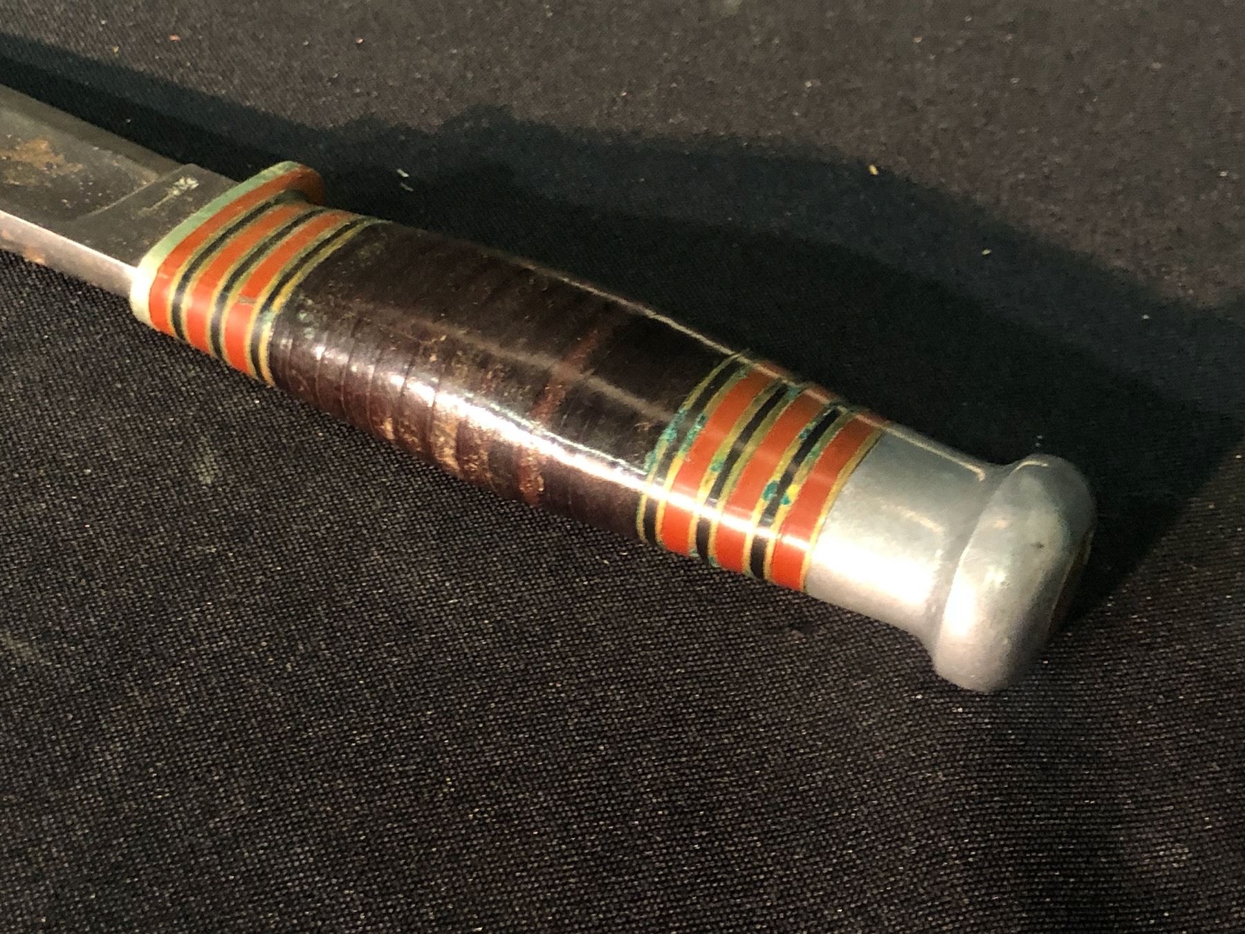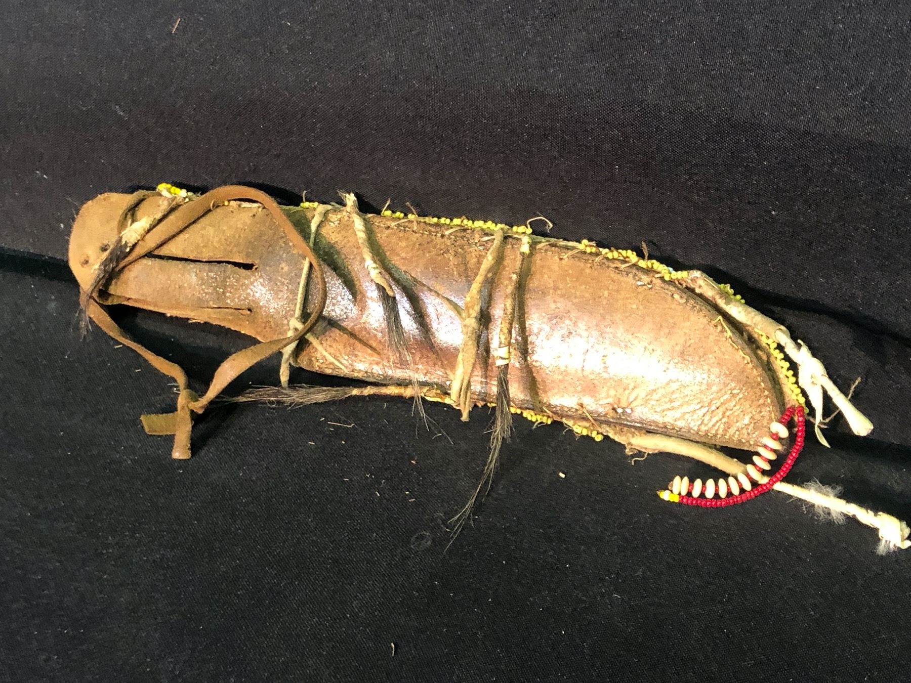 "PIONEER" BY WADE & BUTCHER HUNTING KNIFE WITH NATIVE BEADED LEATHER SHEATH, 10.5" FROM BUTT OF HANDLE TO END OF SHEATH