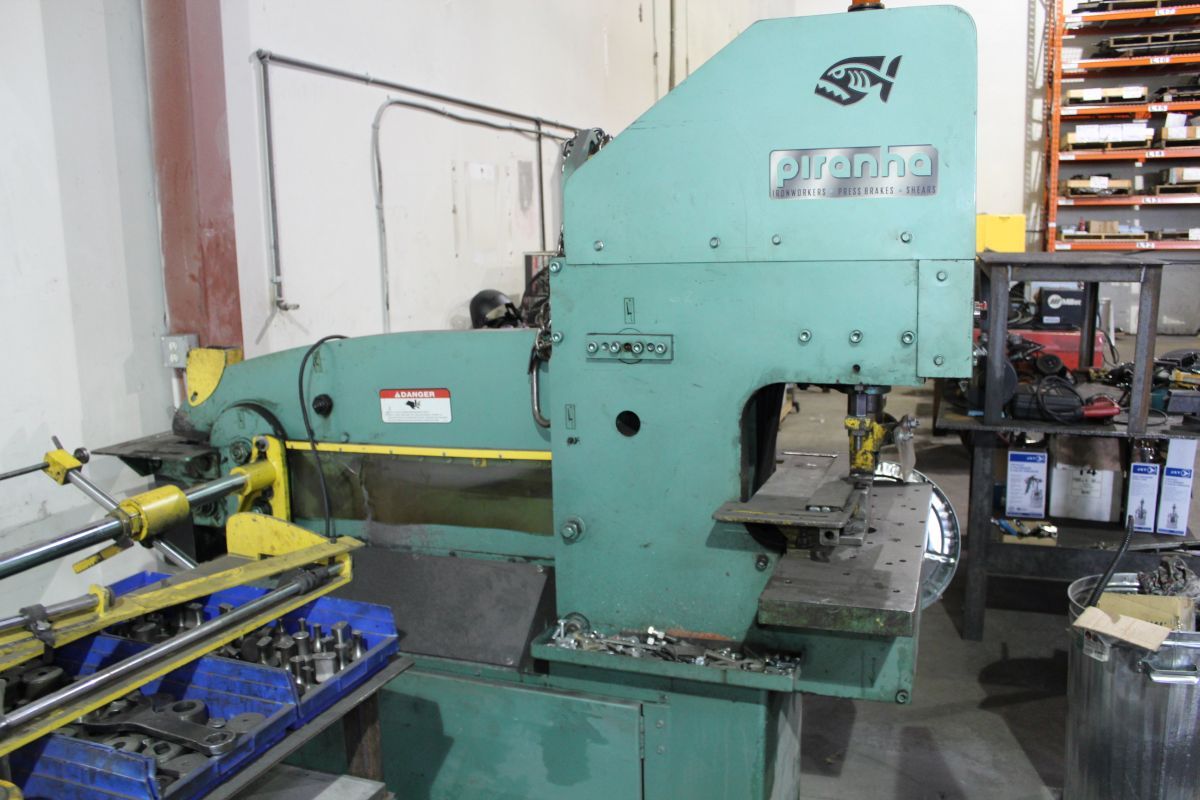 PIRANAH SHEAR/ PRESS BRAKE/ IRONWORKER WITH METAL WORK BENCH AND TOOLING