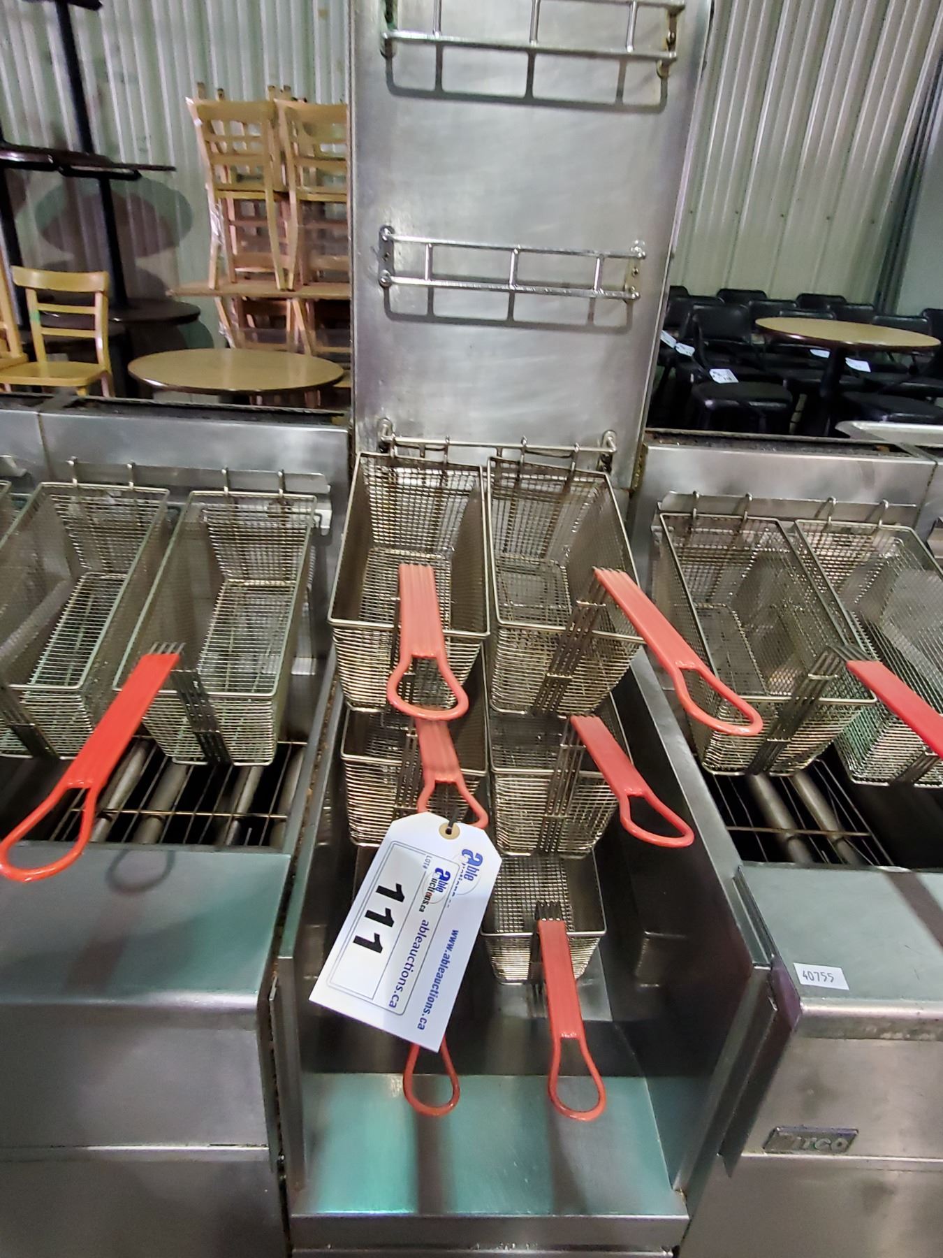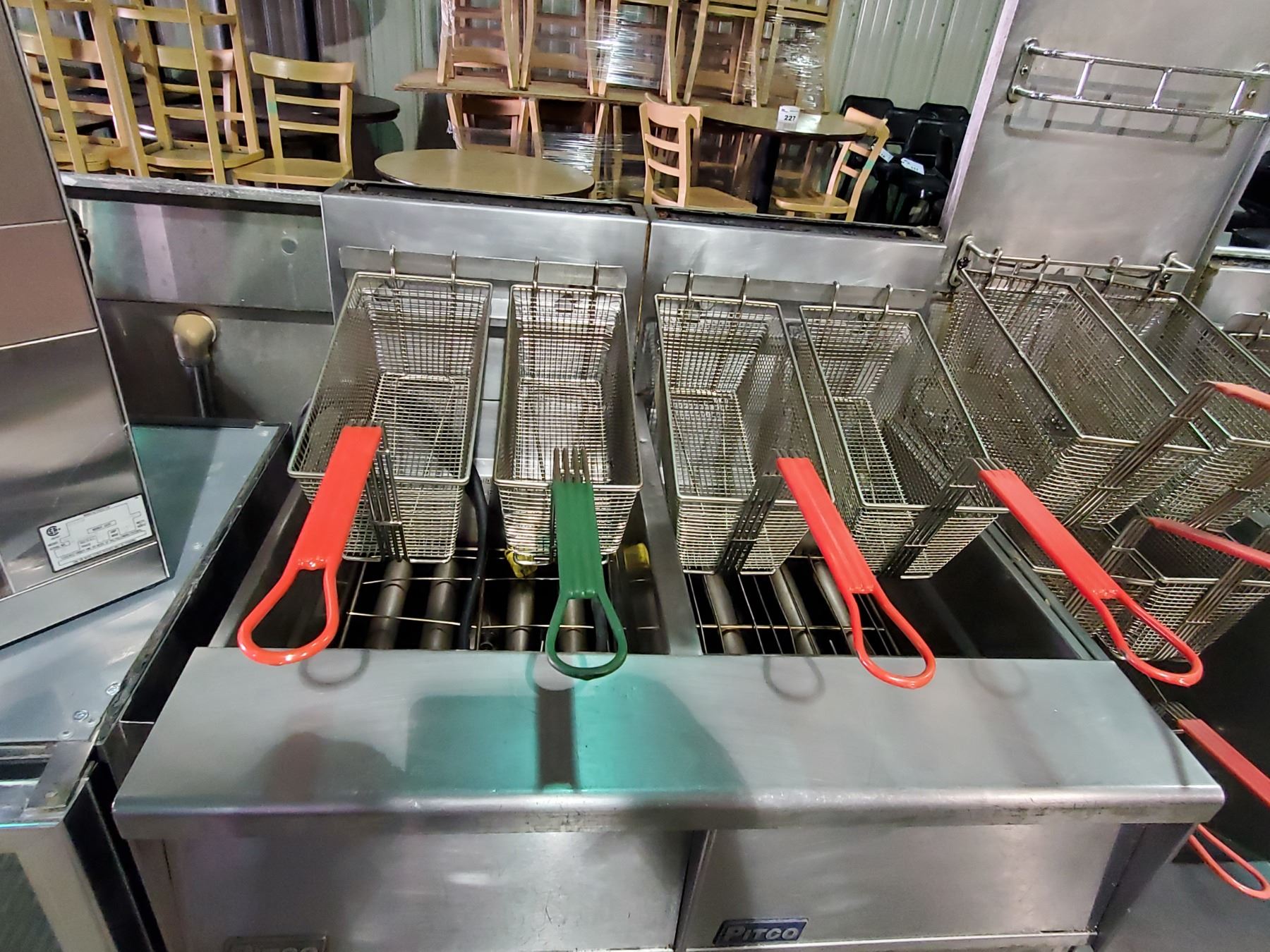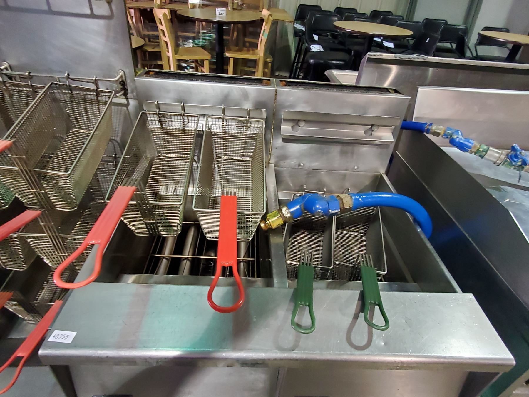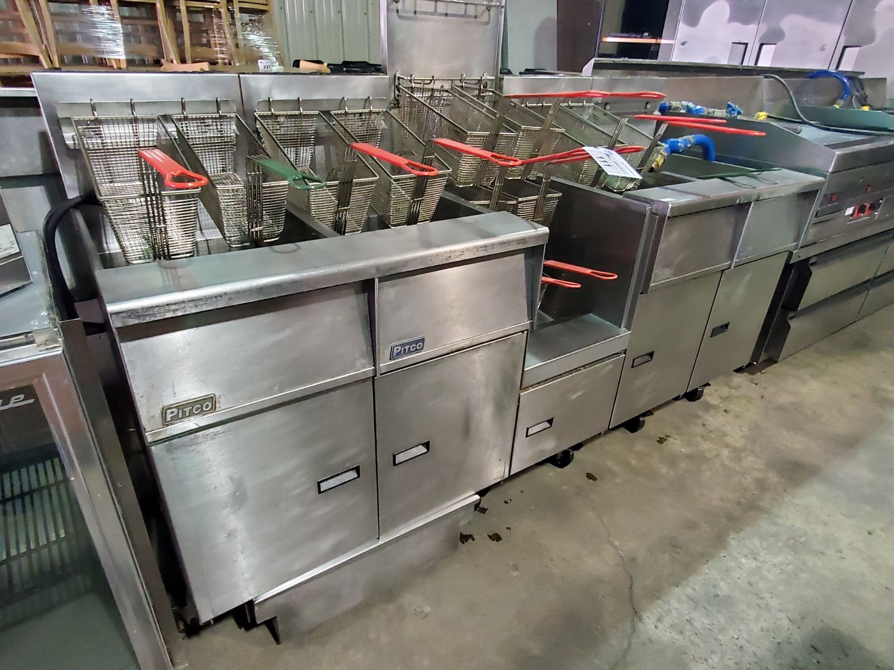 PITCO SGH-50 STAINLESS STEEL COMMERCIAL GAS 4 BAY FRYER WITH 14 FRYING BASKETS