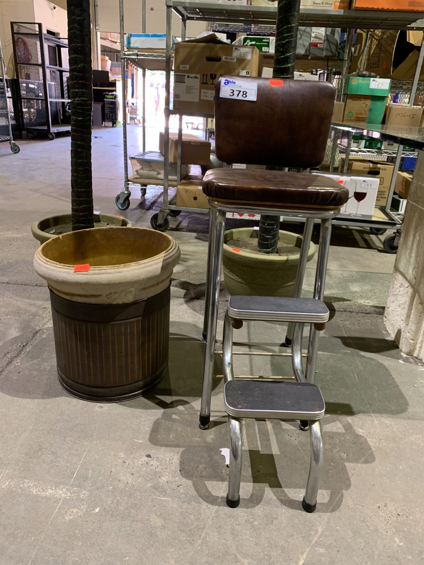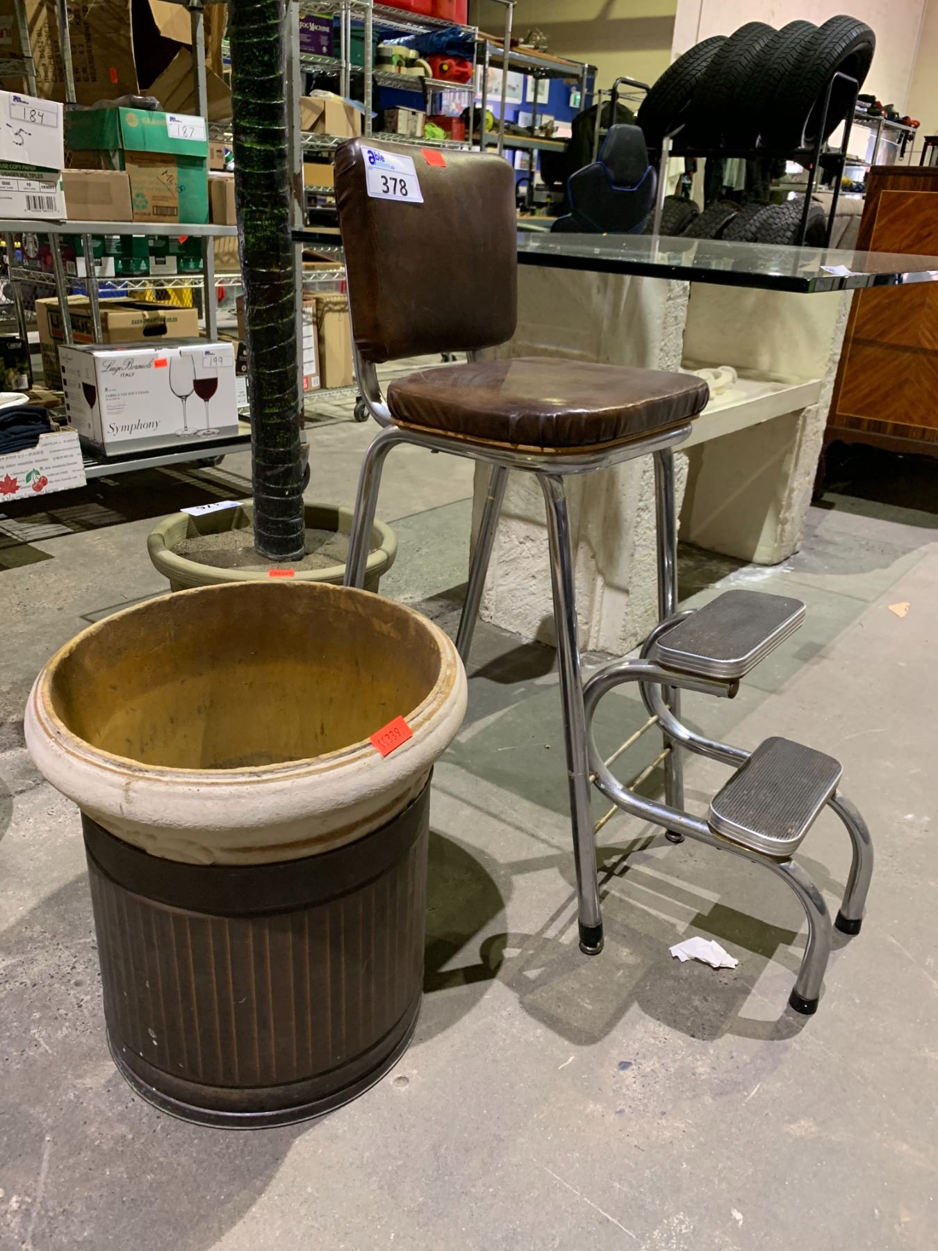 PLANTER POT & VINTAGE FOLD-OUT STEP CHAIR