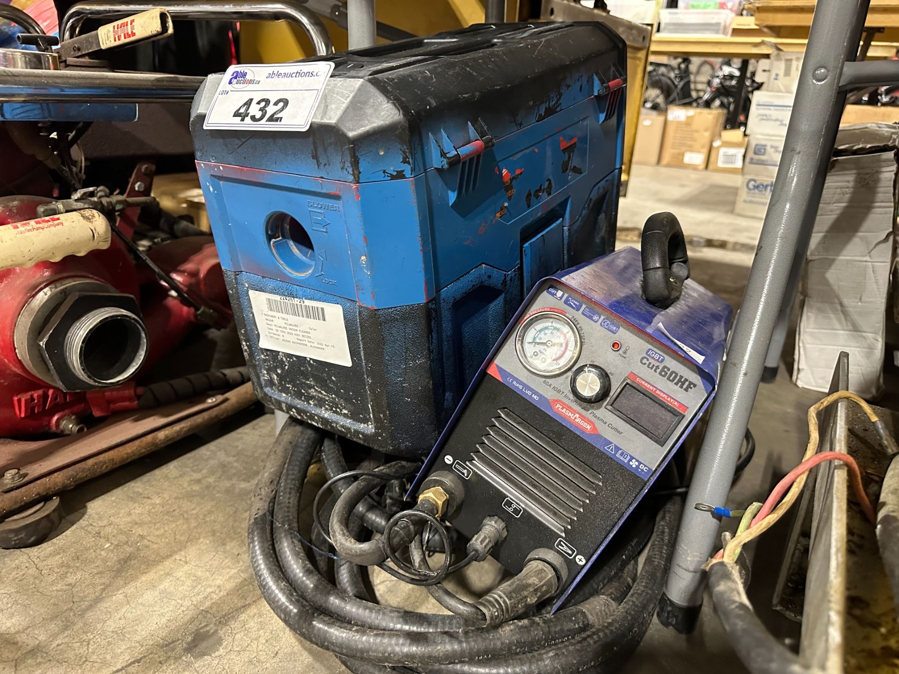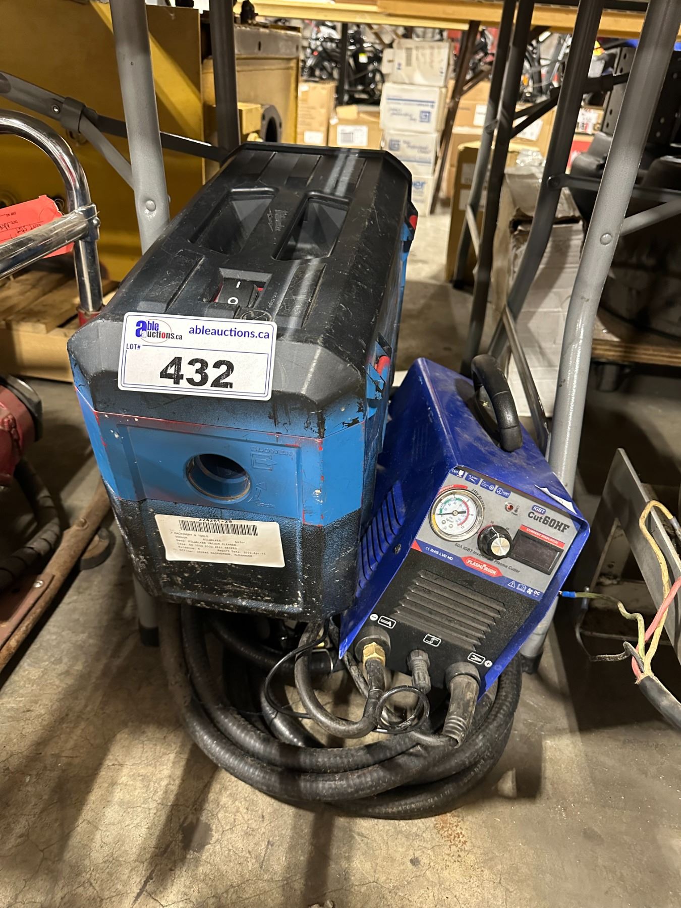 PLASMA DRAGON CUT60HF 60A IGBT INVERTER PORTABLE AIR PLASMA CUTTER WITH CABLES, CUTTER WAND AND MILWAUKEE PORTABLE CORDLESS WET/DRY VACUUM
