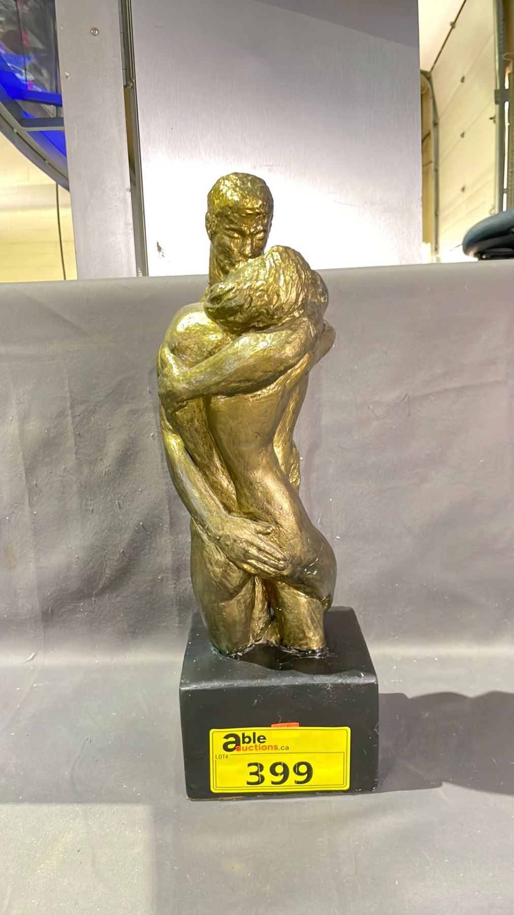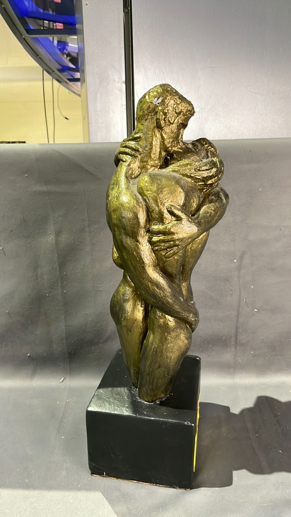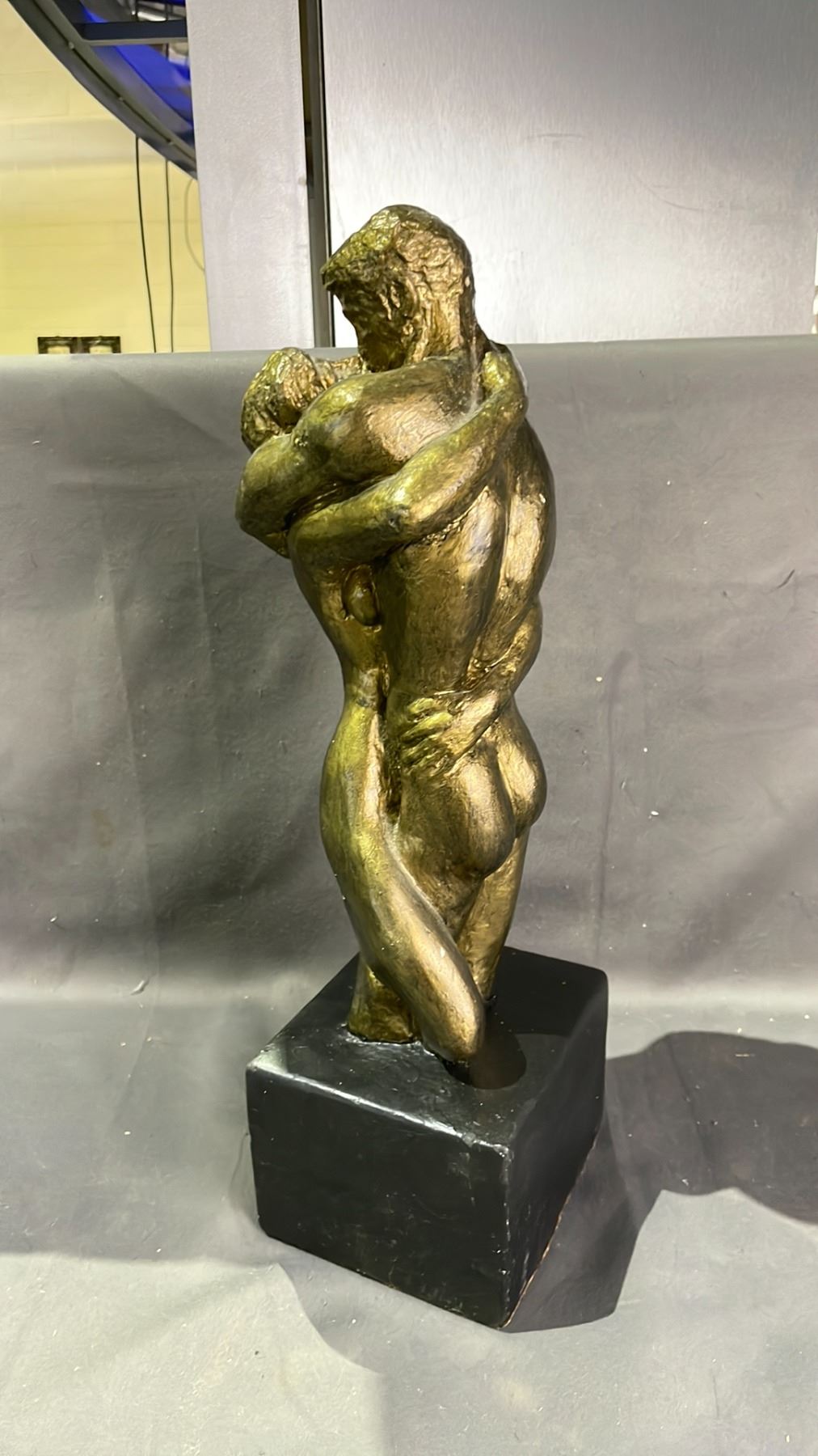 PLASTER SCULPTURE WITH BRONZE PAINTED FINISH ON WOOD BASE BY JEROME COX TITLED "BODY & SOUL" 23"H