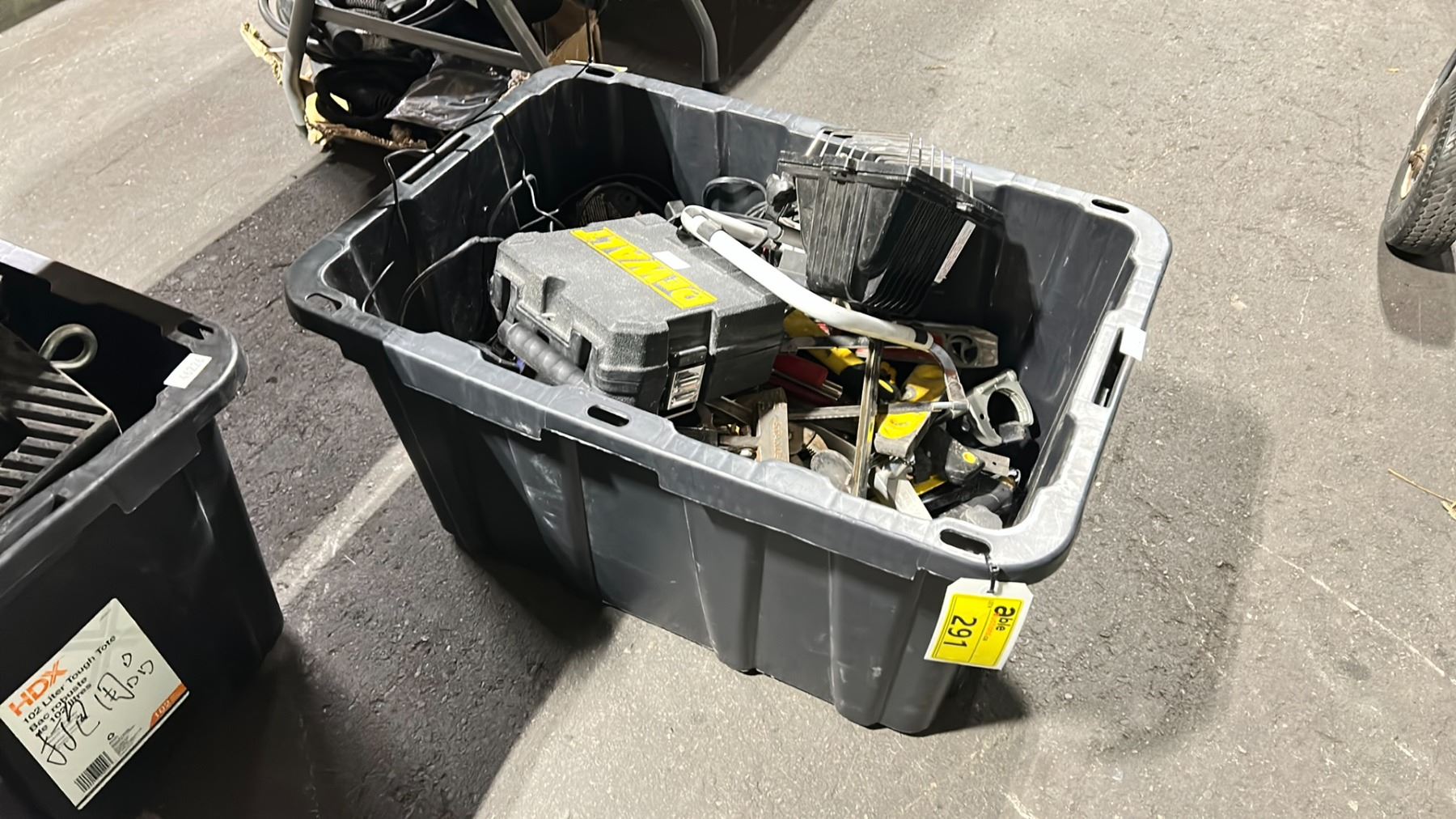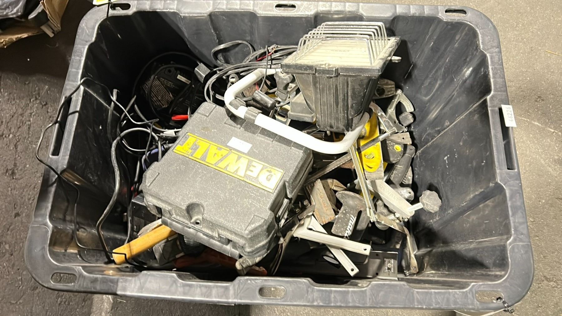 PLASTIC BIN OF ASSORTED HAND TOOLS *BIN INCLUDED*