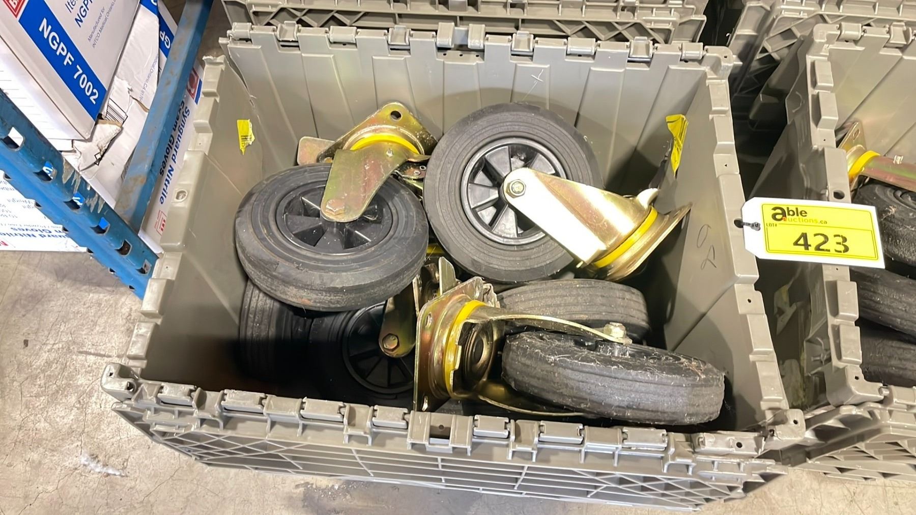 PLASTIC BIN WITH 2 SETS OF 4 RUBBER 8" INDUSTRIAL REPLACEMENT CASTERS WITH 4 LOCKING CASTERS *PLASTIC BIN INCLUDED*