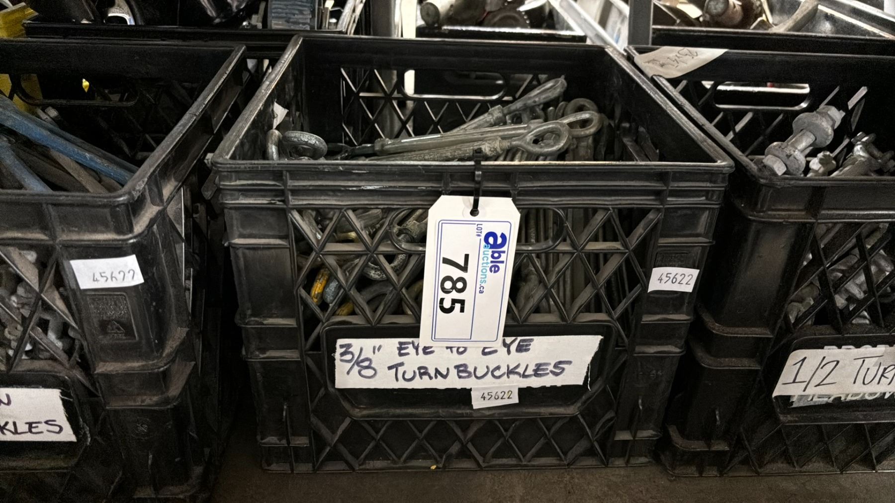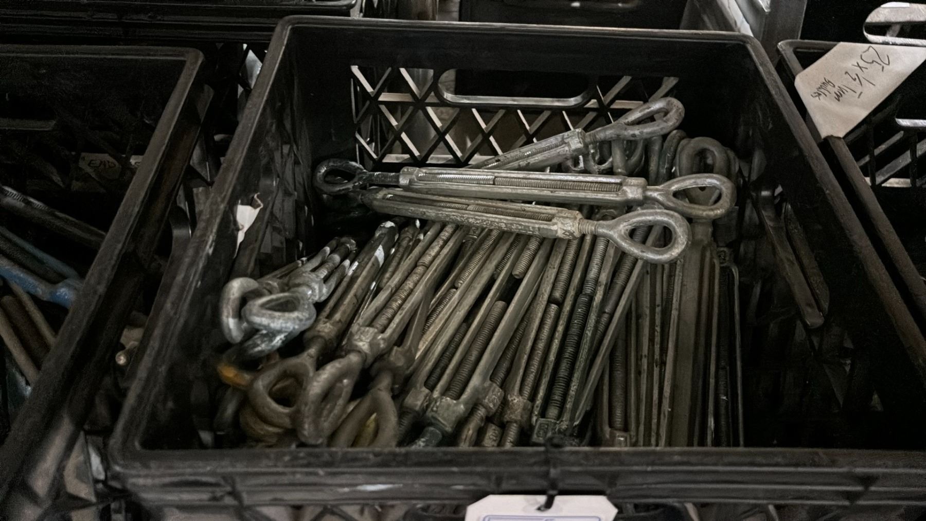 PLASTIC CRATE OF 3/8" SCREW TURNBUCKLES *CRATE INCLUDED*
