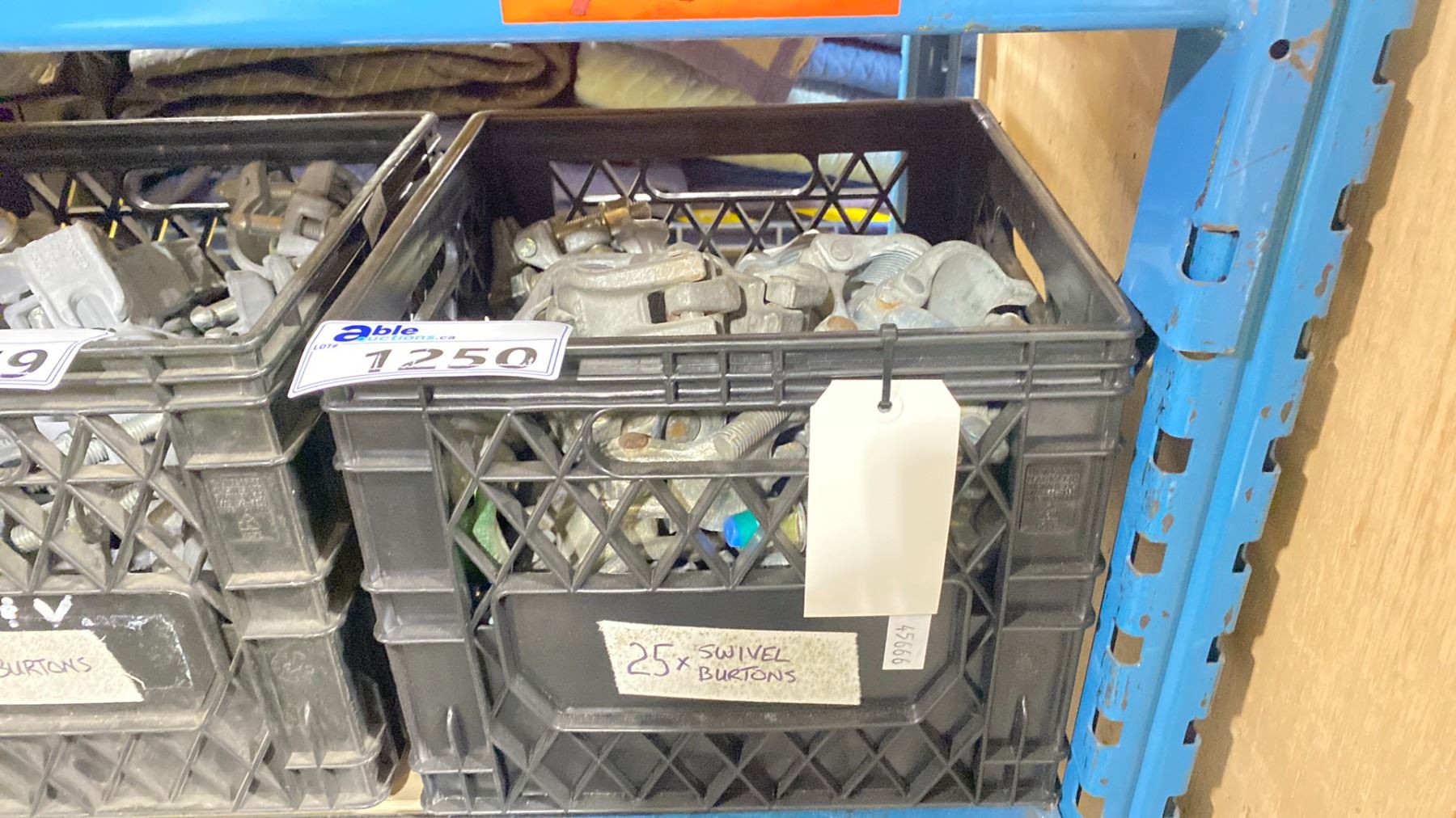 PLASTIC CRATE OF COMMERCIAL PRODUCTION SWIVEL BURTON CLAMPS *CRATE INCLUDED*