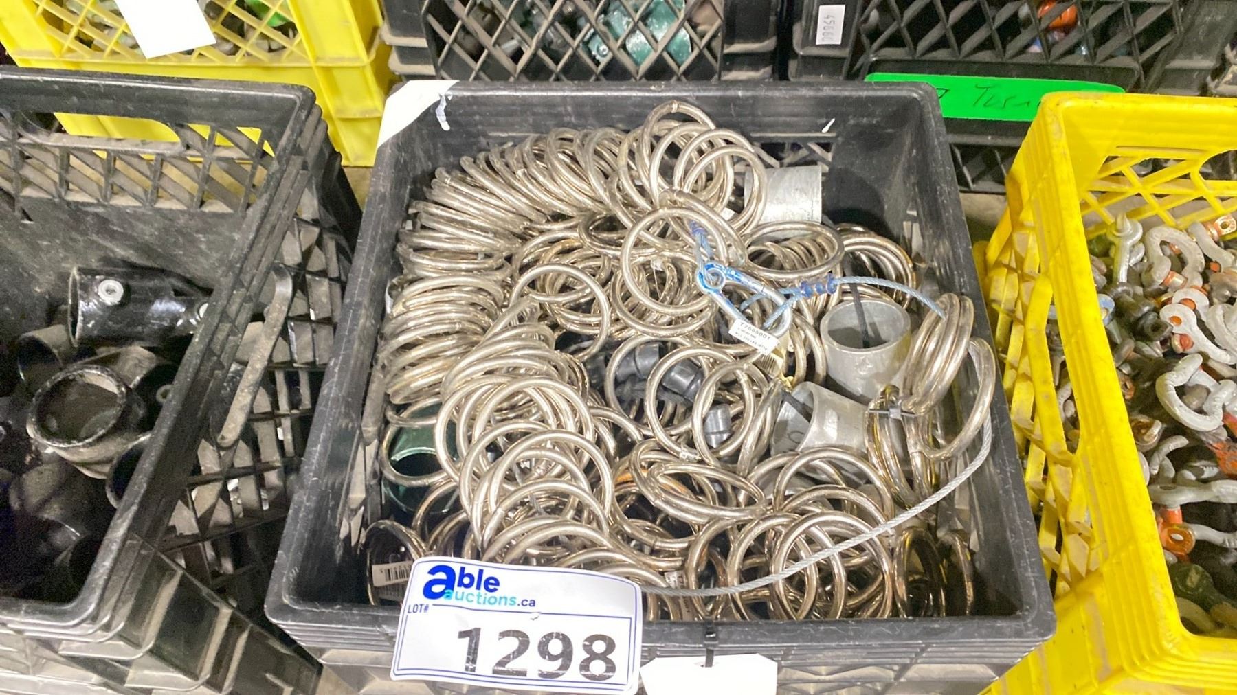 PLASTIC CRATE OF SHACKLES, 2" RINGS, & SHIMS *CRATE INCLUDED*