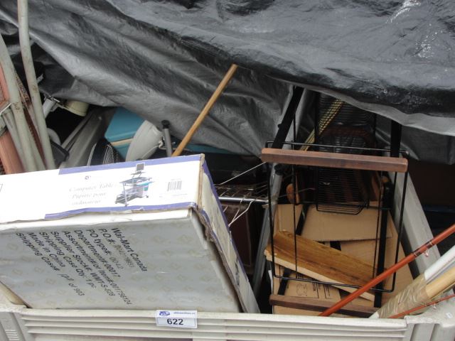 PLASTIC PALLET BIN FILLED WITH ASSORTED HOUSEHOLD ITEMS; BIN NOT INCLUDED