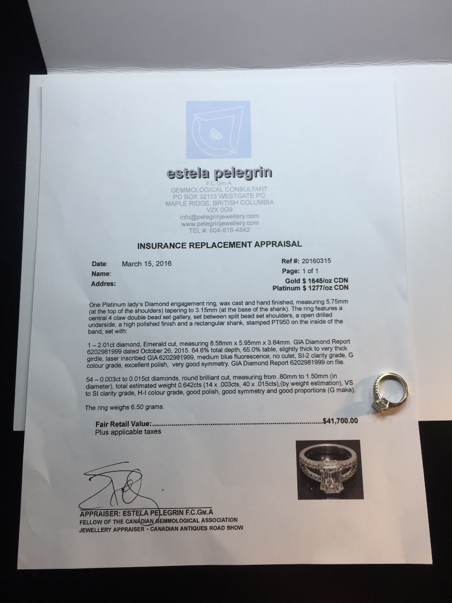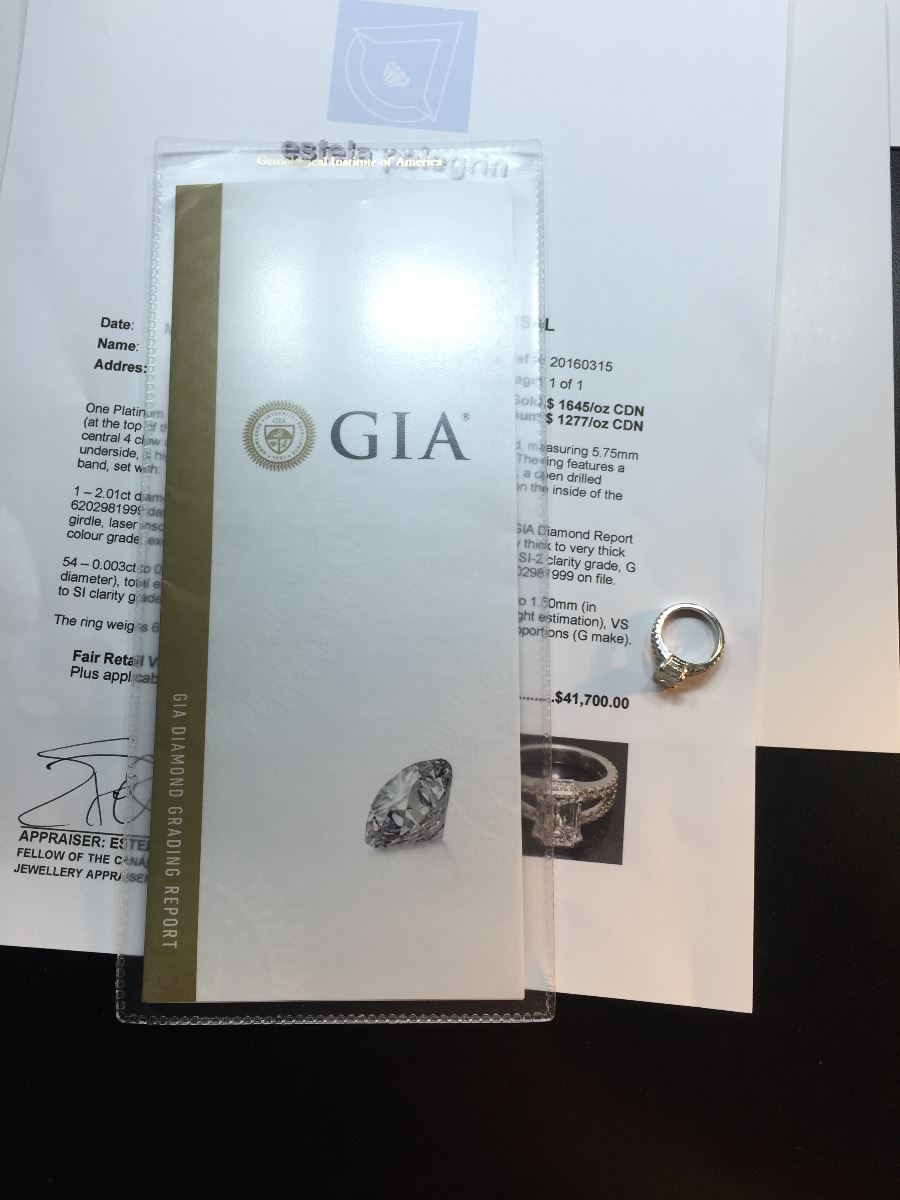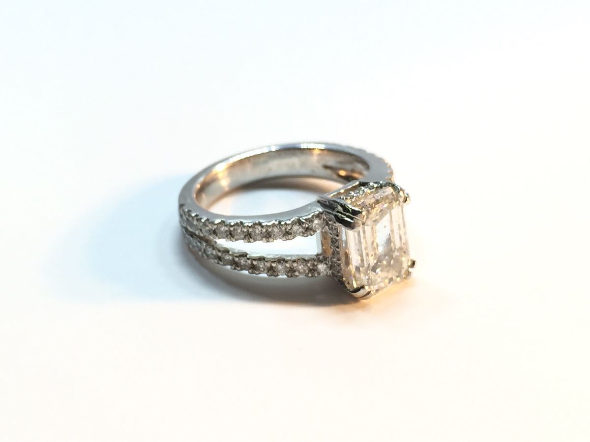 PLATINUM DIAMOND ENGAGEMENT RING W/GIA 2.01CT SI-2 G EMERALD CUT DIAMOND, APPRAISED VALUE $41,700