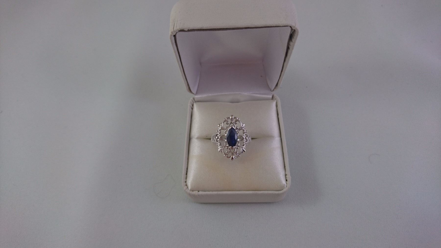 PLATINUM LADIES RING SET WITH ONE MARQUISE BLUE SAPPHIRE TW 5.2 GRAM REPLACEMENT VALUE $850