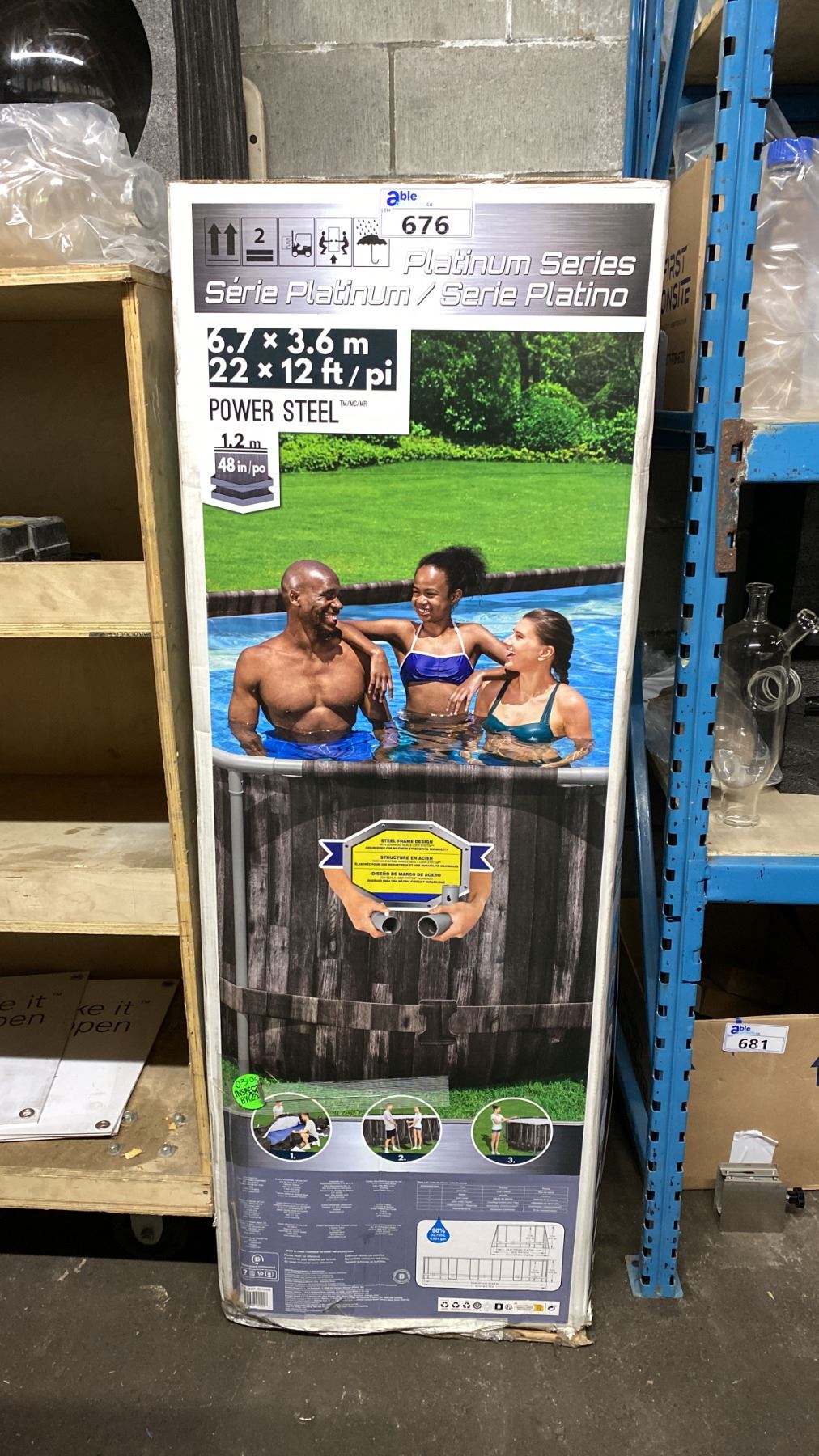 PLATINUM SERIES 22'L X 12'W X 4' DEEP RESIDENTIAL SWIMMING POOL WITH SAND FILTER, LADDER, POOL COVER, SOLAR WATER HEATER, CHEMCONNECT DISPENSER & MAINTENANCE KIT 22,795L