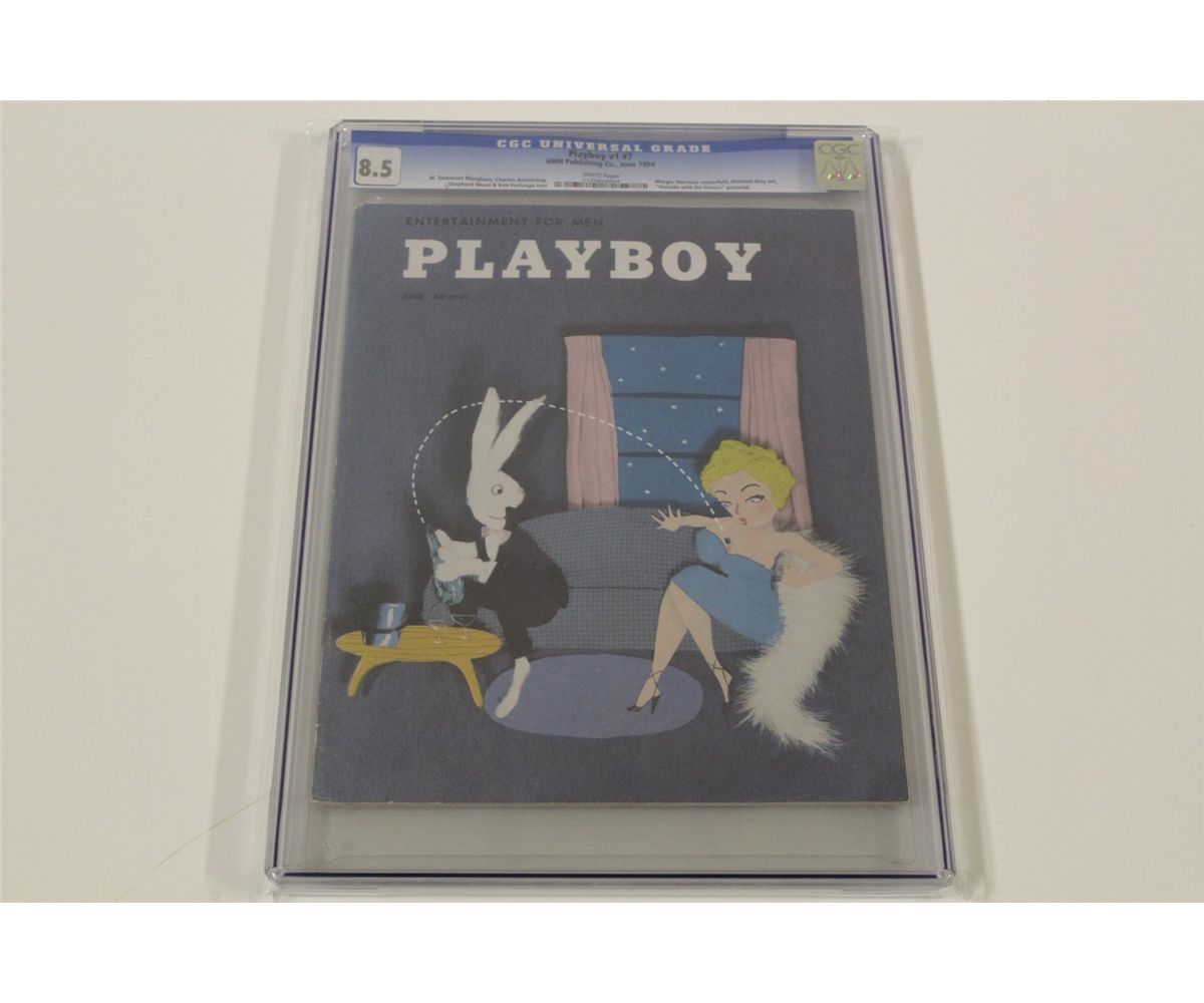 PLAYBOY VOL. 1 #7 CGC 8.5 (VF+) (1954) WITH WHITE PAGES & 60 YEARS OLD, THIS IS THE 7TH ISSUE EVER PUBLISHED FROM THE ALL-TIME CLASSIC MAG! A CGC 8.5 COPY SOLD IN JULY 2012 FOR $400 & A 9.0 IN MARCH 2010 FOR $995 AS TRACKED THROUGH THE GPA