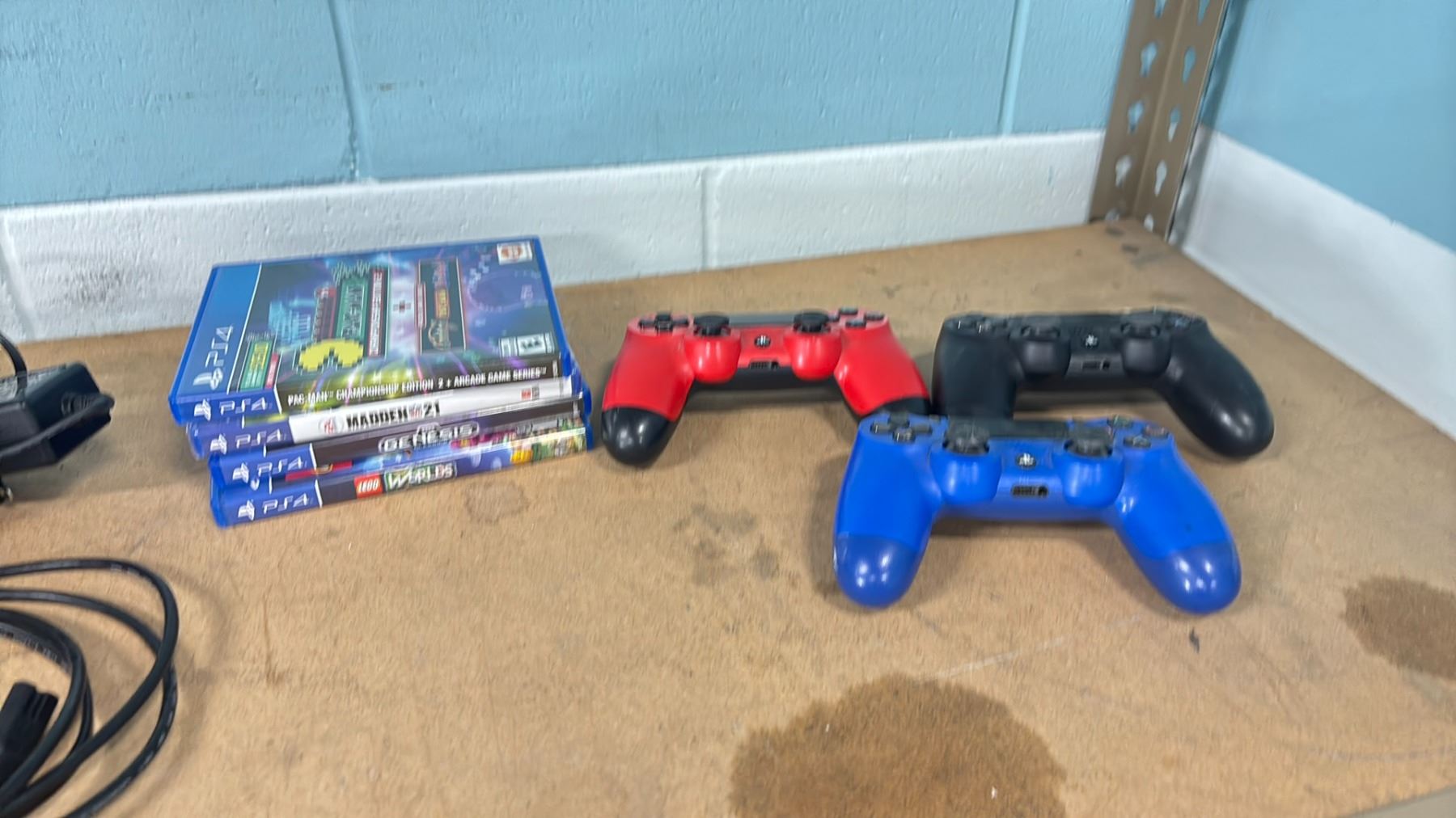 PLAYSTATION 4 WITH POWER CORD, 3 CONTROLLERS, HDMI CORD & 4 GAMES