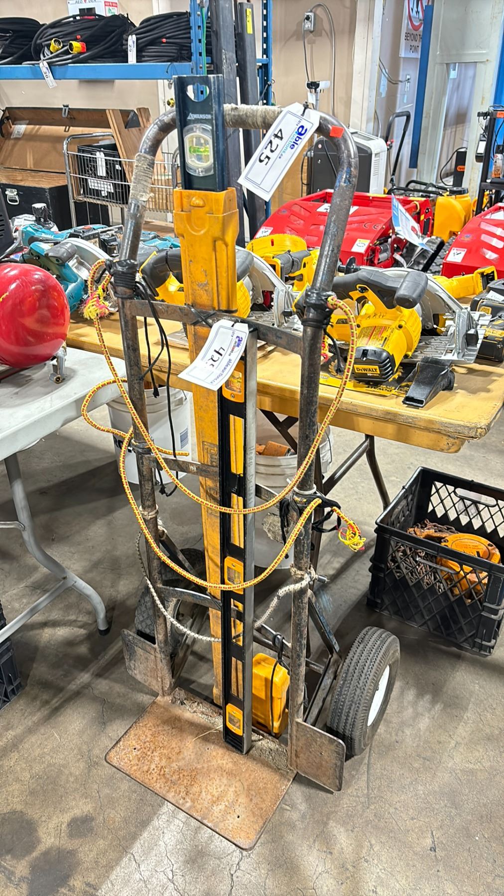 PNEUMATIC 2 WHEEL HAND TRUCK WITH 2 VARIOUS SIZED INDUSTRIAL BUBBLE LEVELS