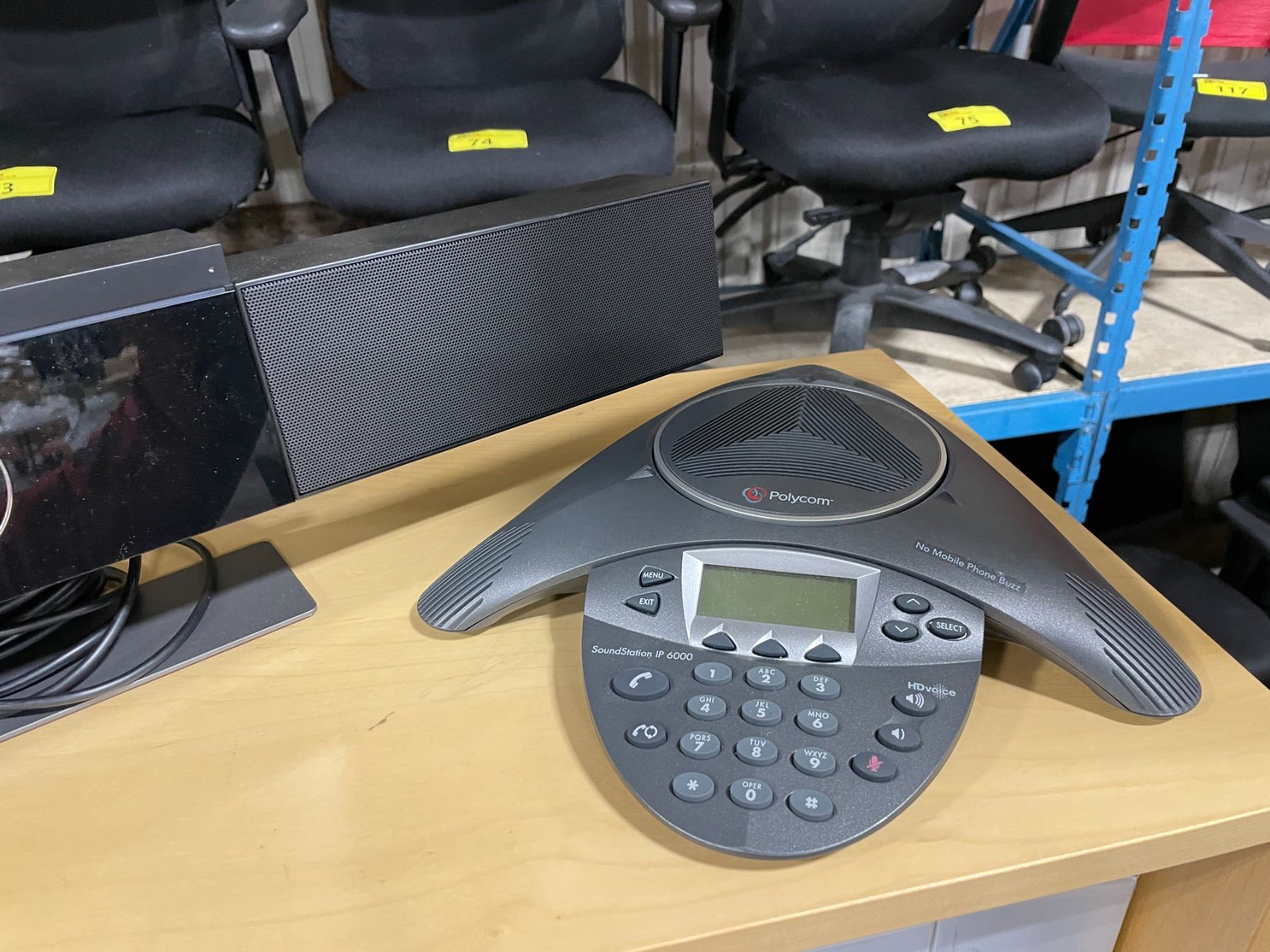 POLYCOM SOUNDSTATION IP 6000 CONFERENCE PHONE & POLY REMOTE ADJUSTABLE VIDEO CONFERENCE CAMERA WITH SPEAKERS & REMOTE